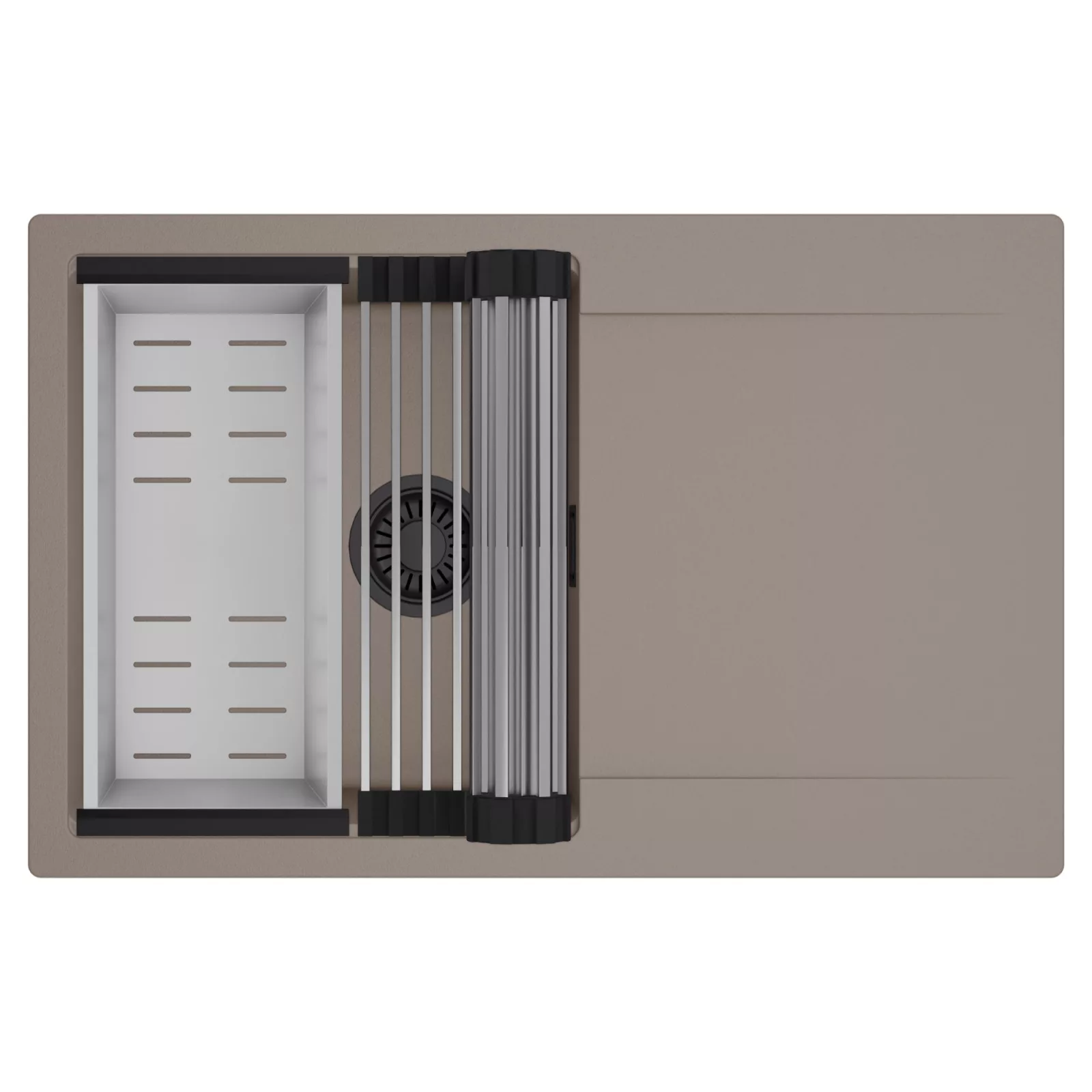 HD Onyx Tortora 78 egymedencés mosogatótálca szett, csepegtetőráccsal és kosárral, tortora