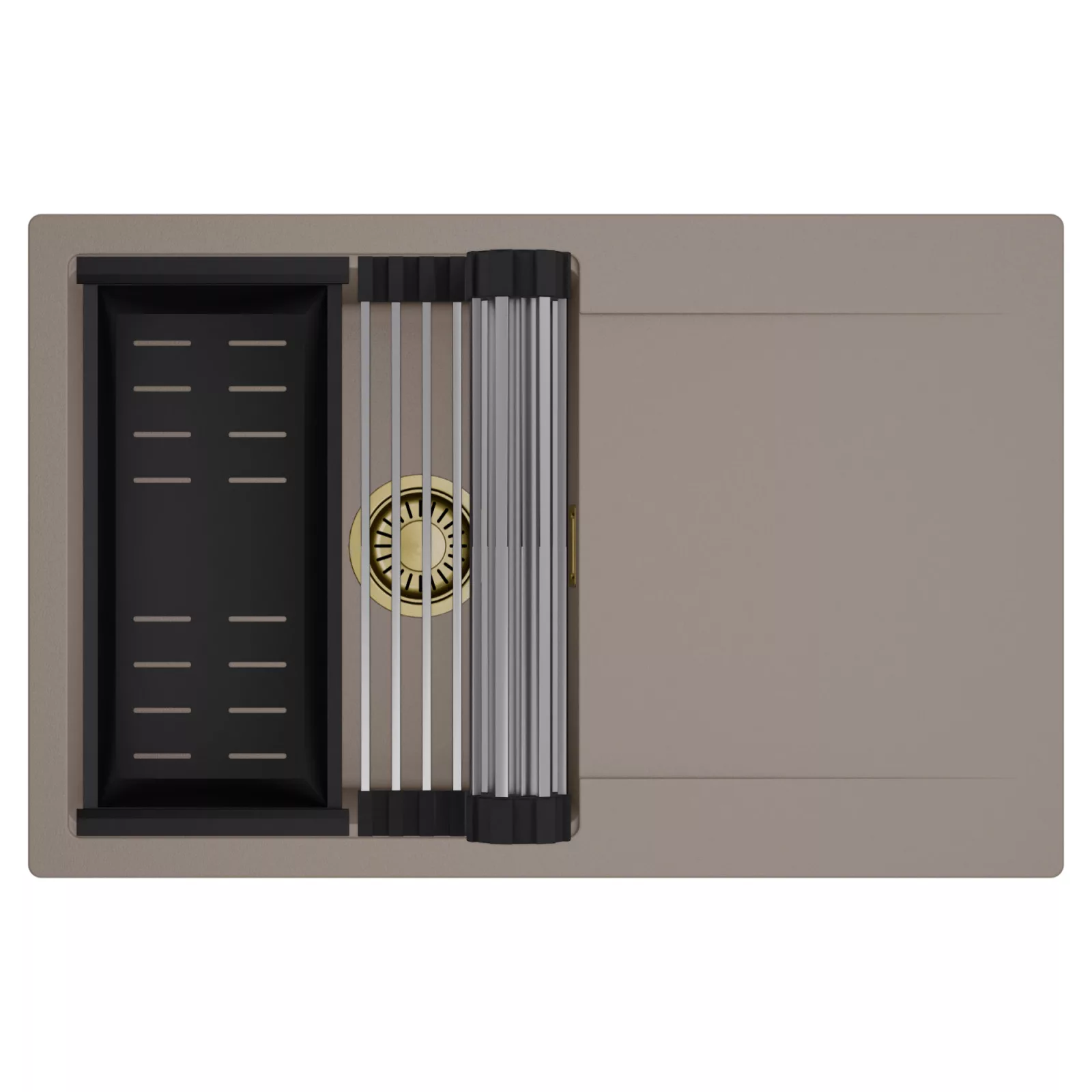HD Onyx Tortora 78 egymedencés mosogatótálca szett, csepegtetőráccsal és kosárral, tortora