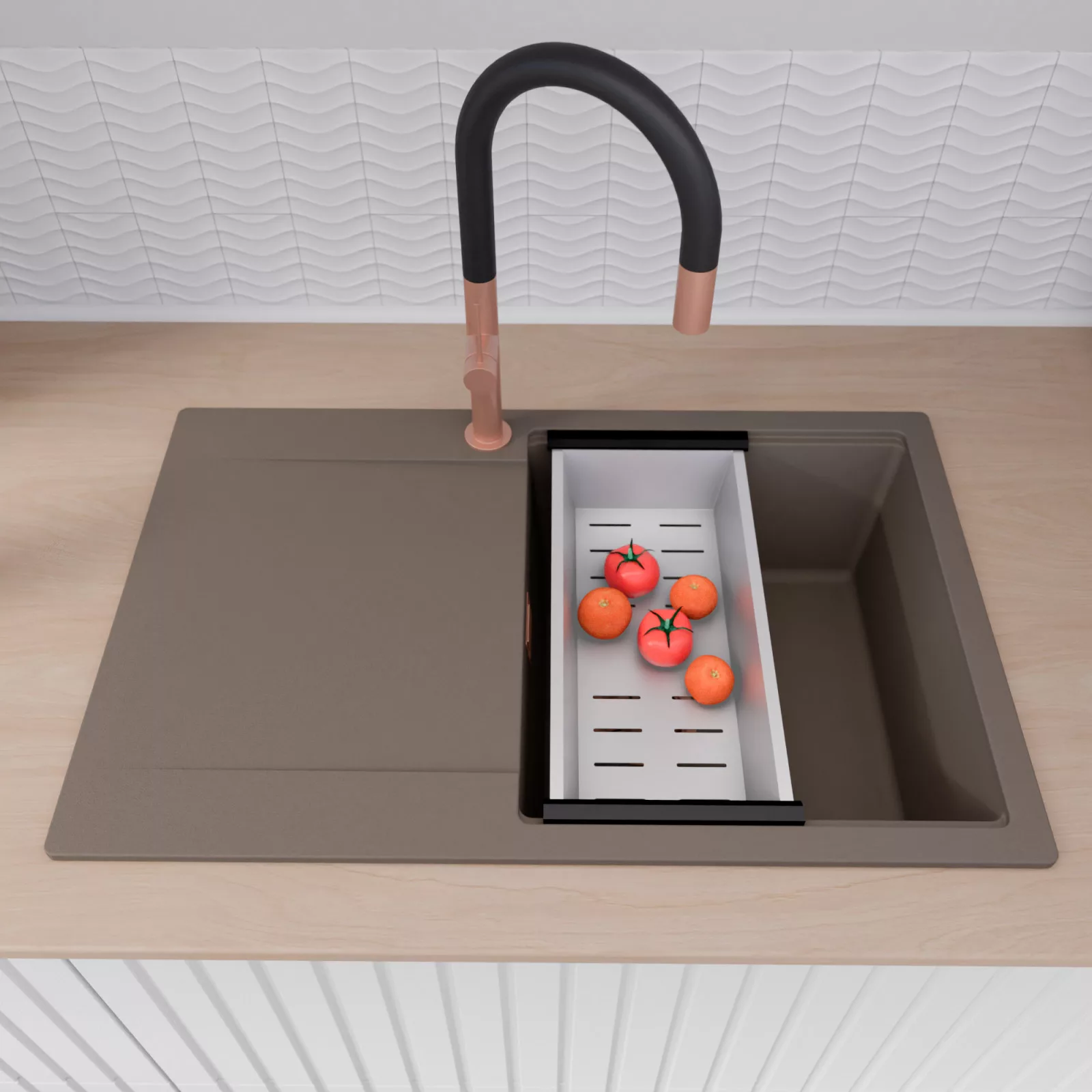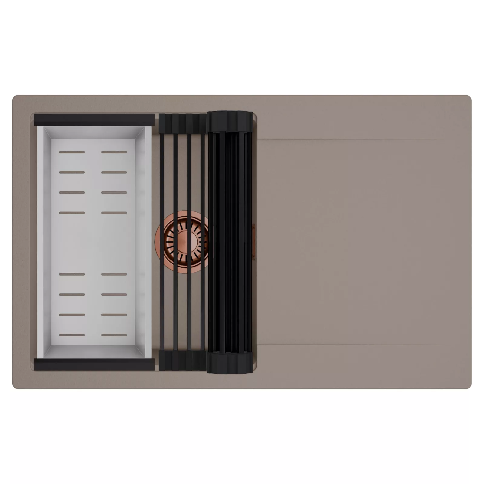 HD Onyx Tortora 78 egymedencés mosogatótálca szett, csepegtetőráccsal és kosárral, tortora