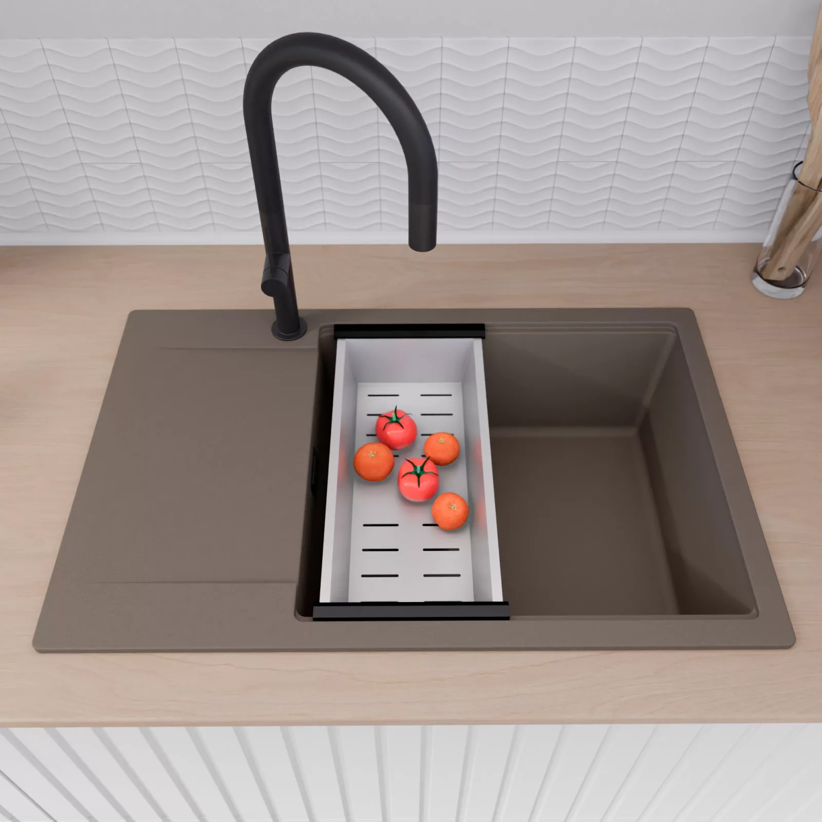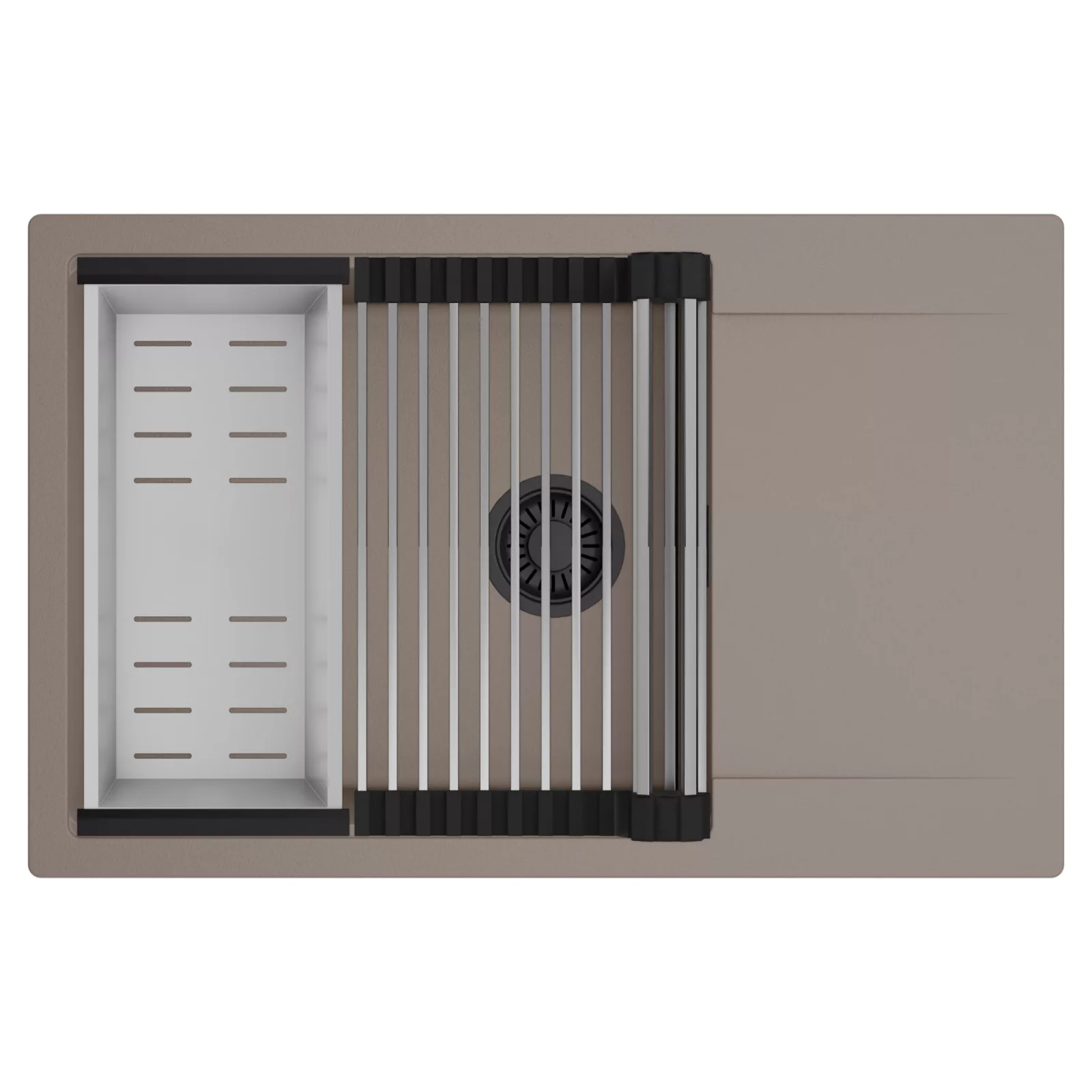 HD Onyx Tortora 78-XL egymedencés mosogatótálca szett, csepegtetőráccsal és kosárral, tortora