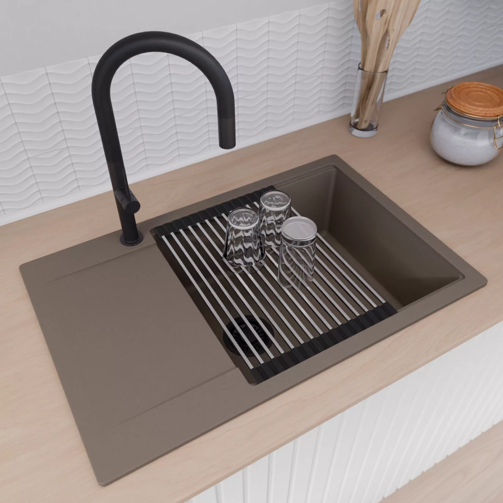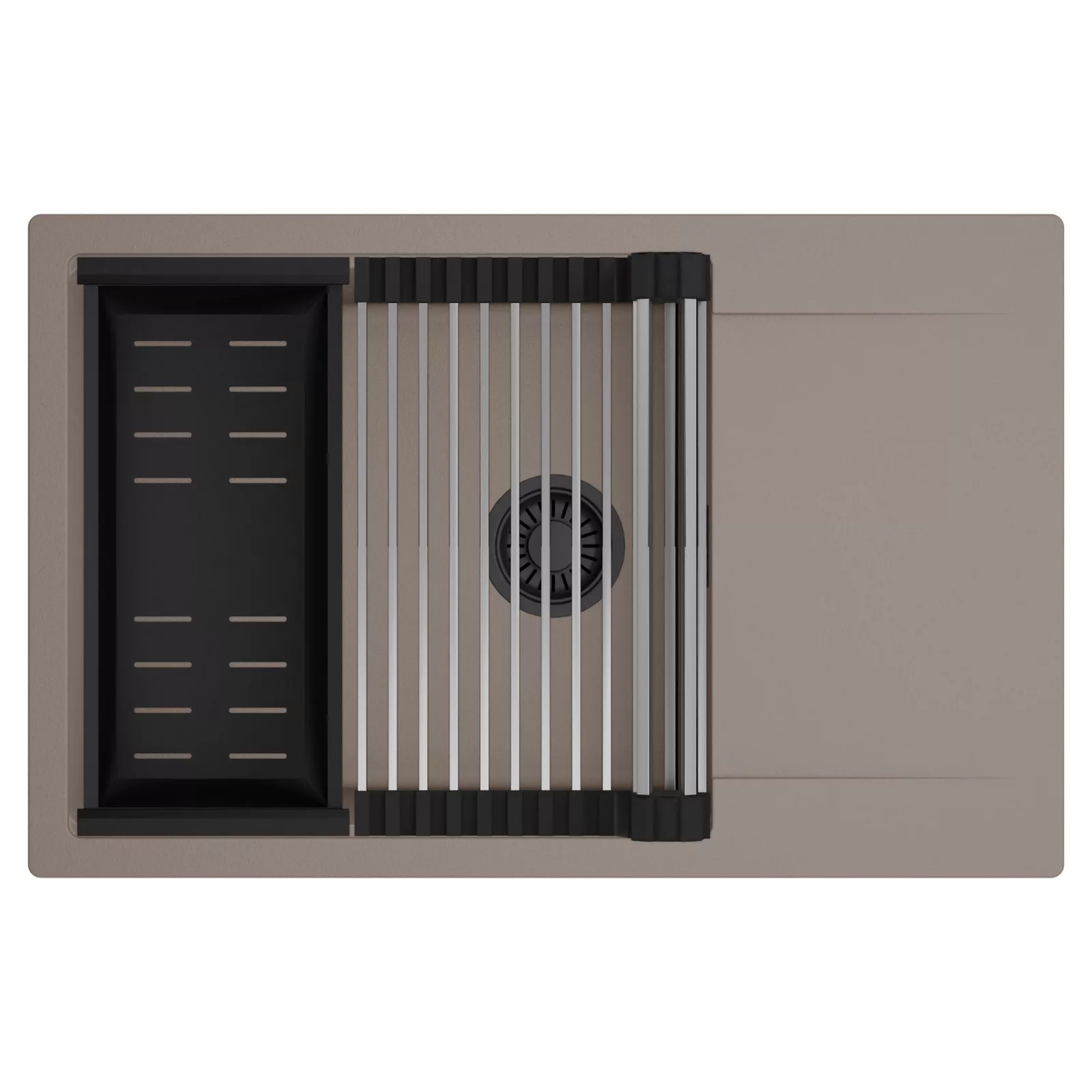HD Onyx Tortora 78-XL egymedencés mosogatótálca szett, csepegtetőráccsal és kosárral, tortora