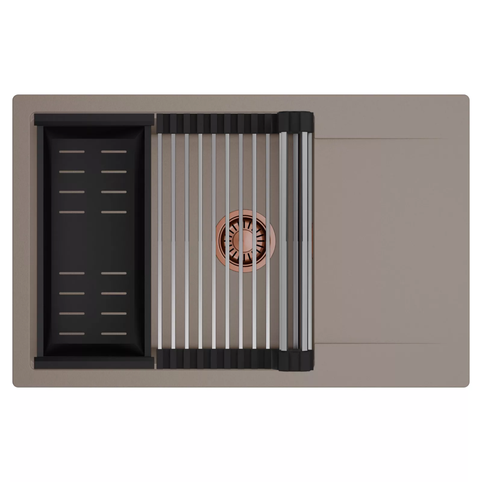 HD Onyx Tortora 78-XL egymedencés mosogatótálca szett, csepegtetőráccsal és kosárral, tortora