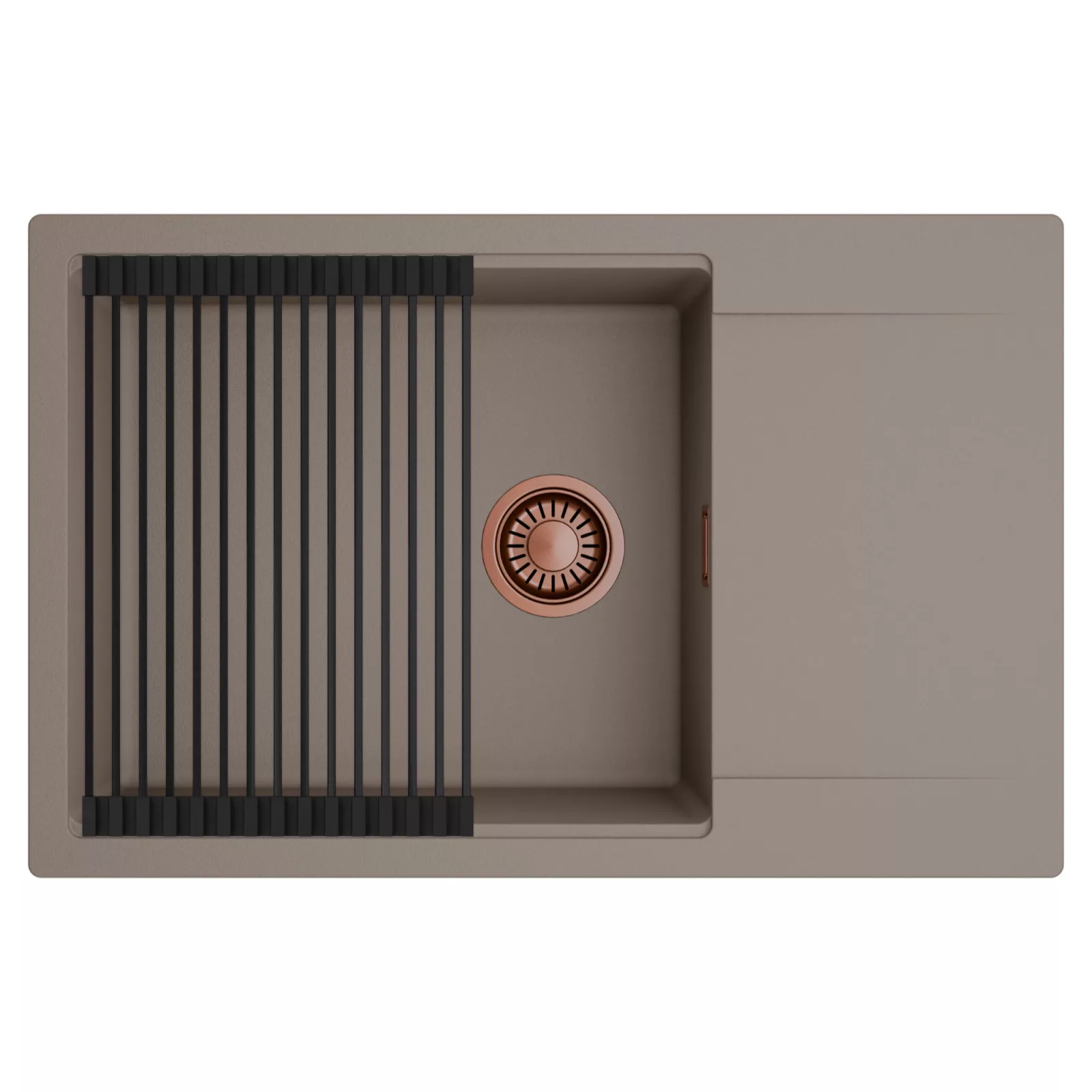 HD Onyx Tortora 78-XL egymedencés mosogatótálca szett, csepegtetőráccsal, tortora