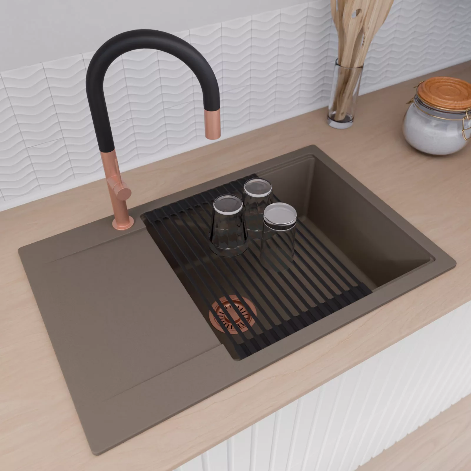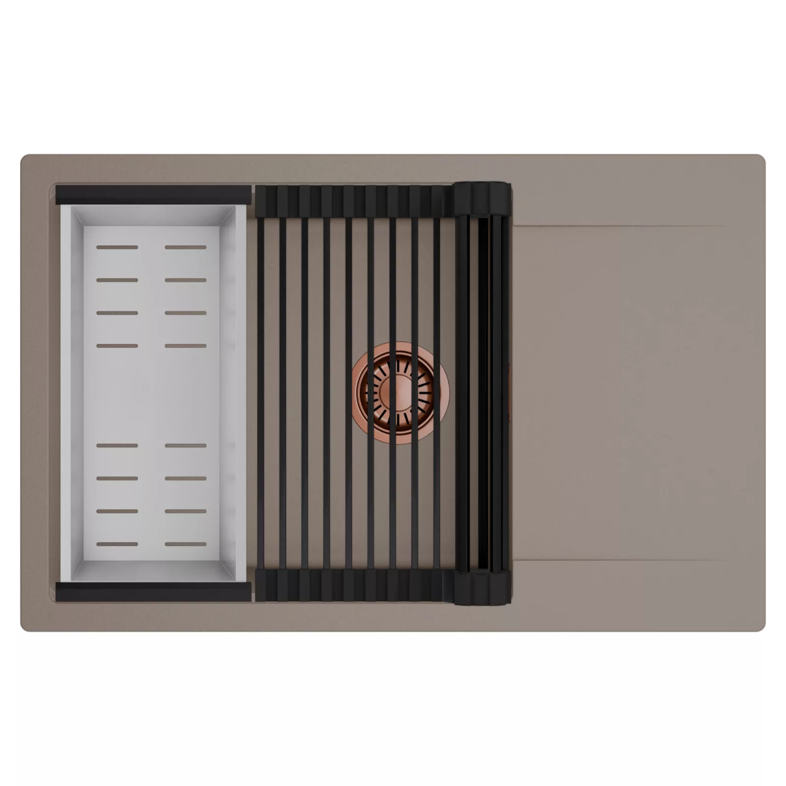 HD Onyx Tortora 78-XL egymedencés mosogatótálca szett, csepegtetőráccsal és kosárral, tortora
