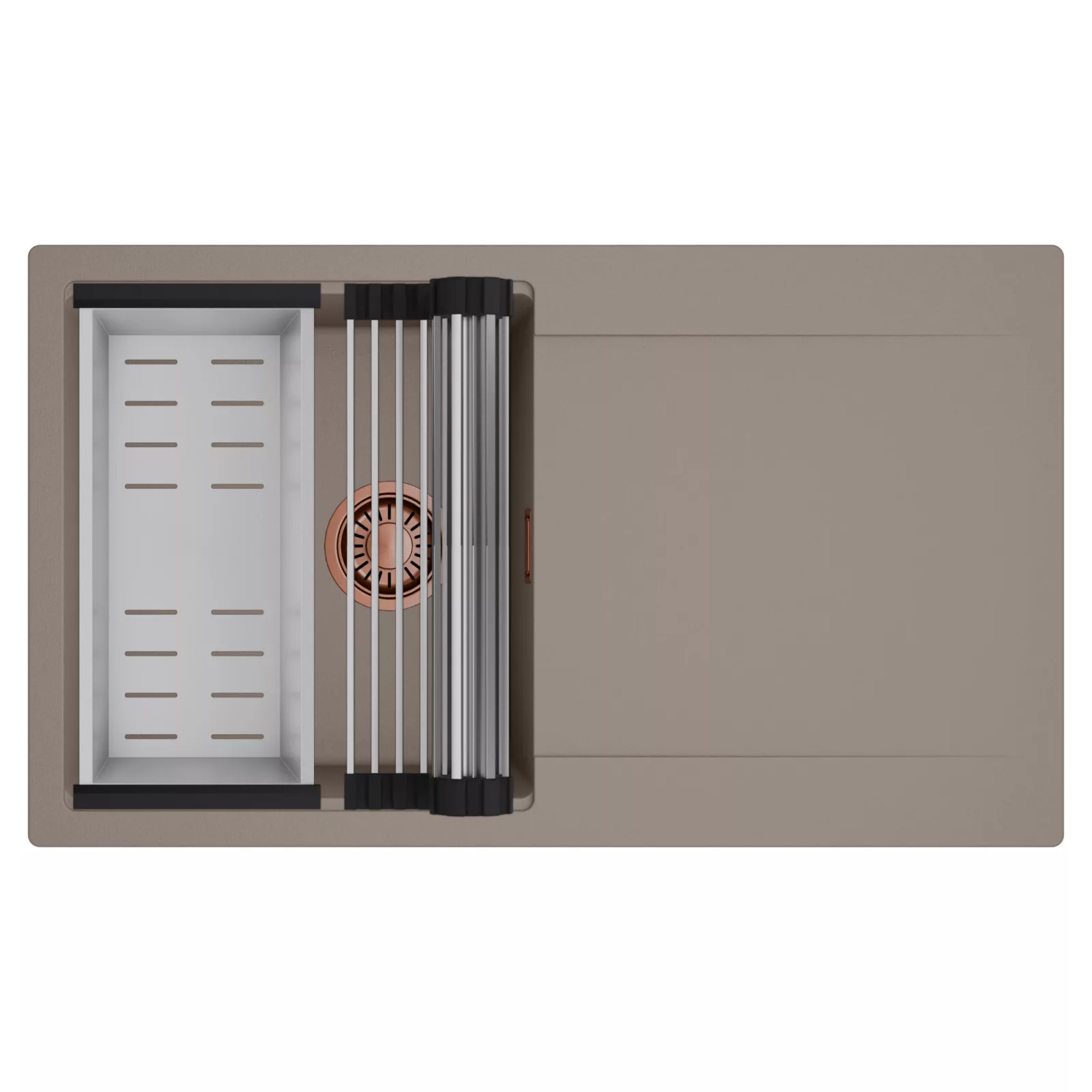 HD Onyx Tortora 86 egymedencés mosogatótálca szett, csepegtetőráccsal és kosárral, tortora