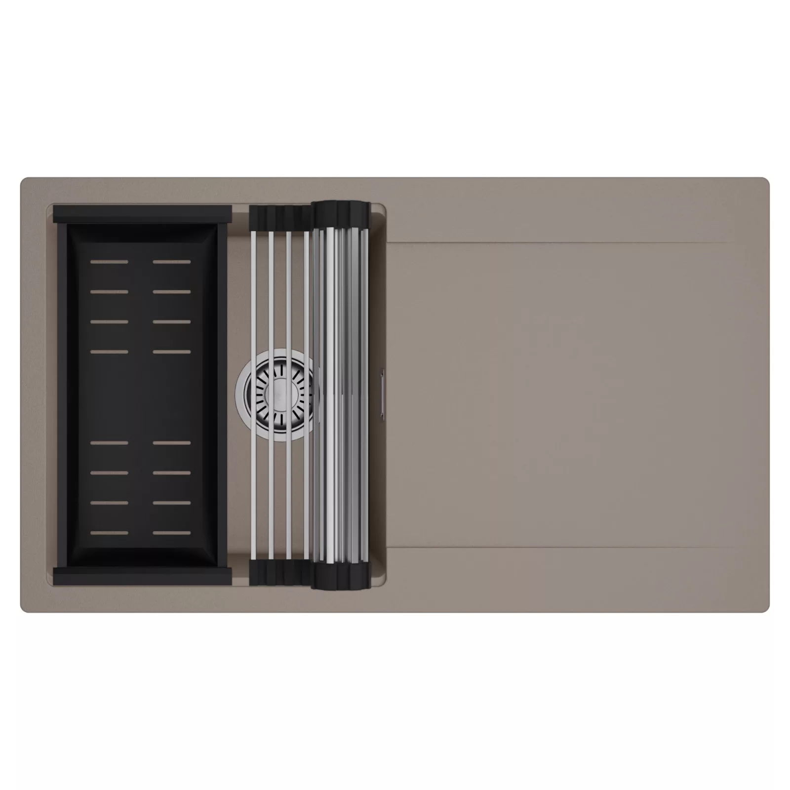 HD Onyx Tortora 86 egymedencés mosogatótálca szett, csepegtetőráccsal és kosárral, tortora