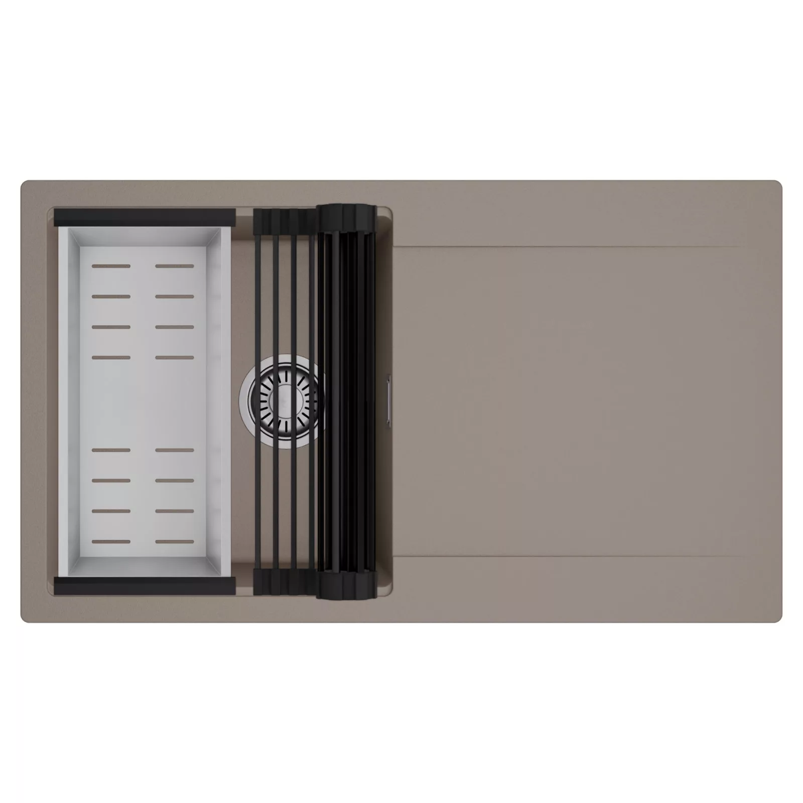 HD Onyx Tortora 86 egymedencés mosogatótálca szett, csepegtetőráccsal és kosárral, tortora