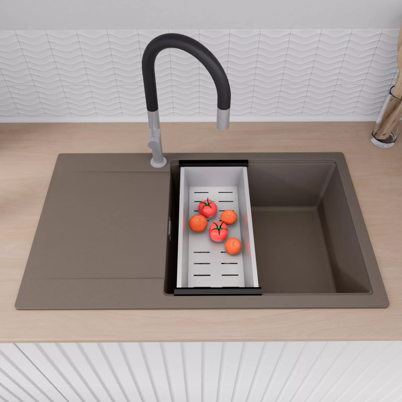 HD Onyx Tortora 86-XL egymedencés mosogatótálca szett, csepegtetőkosárral, tortora