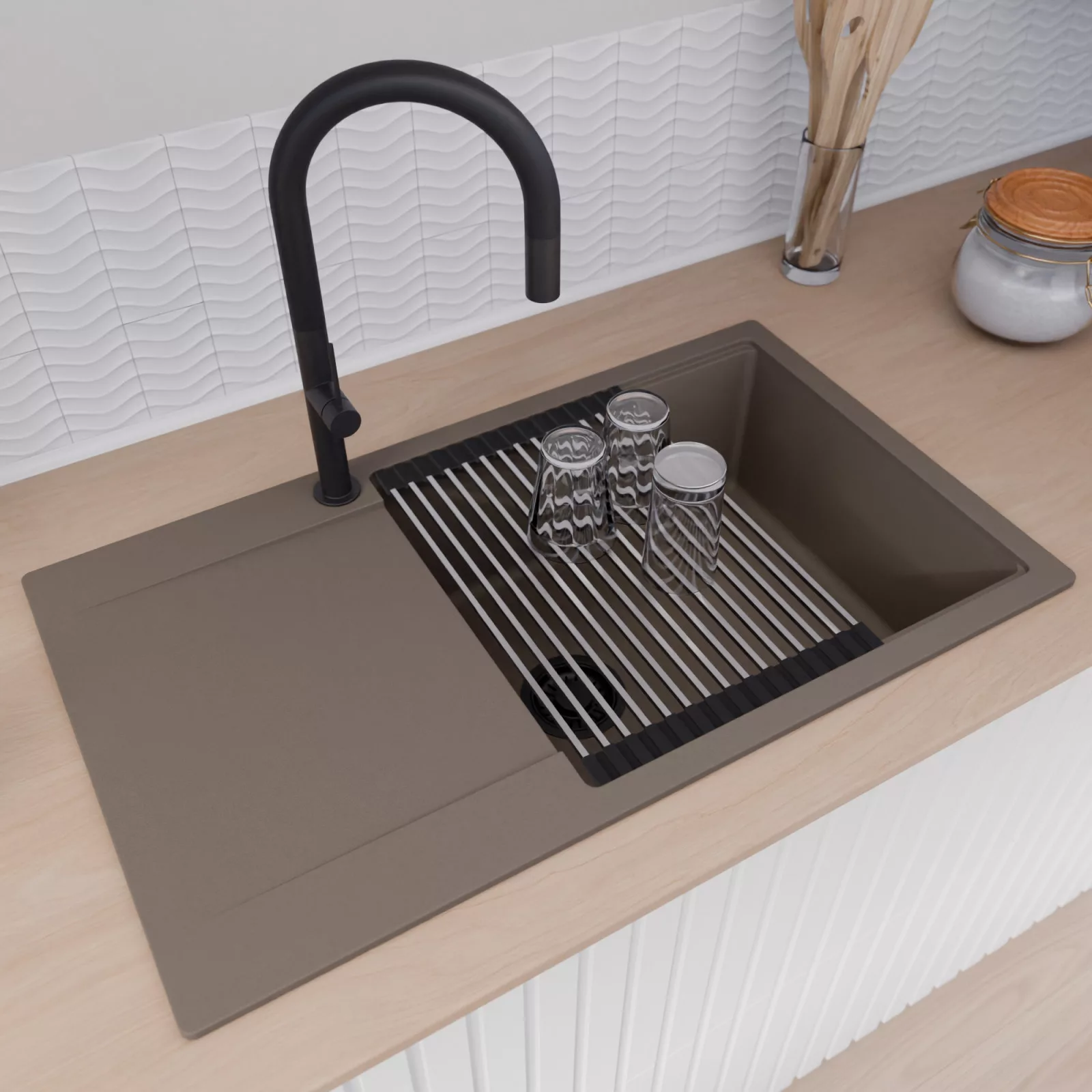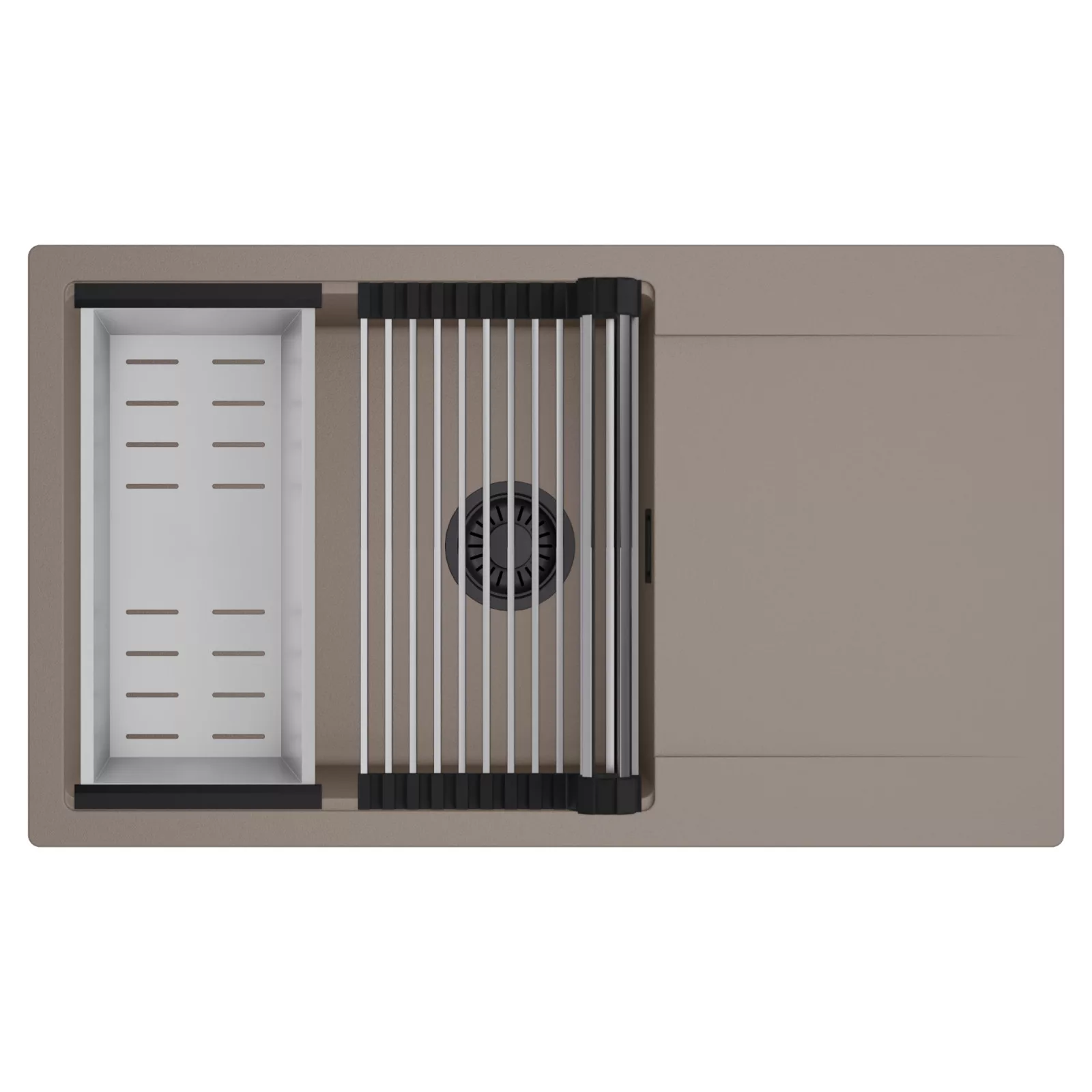 HD Onyx Tortora 86-XL egymedencés mosogatótálca szett, csepegtetőráccsal és kosárral, tortora