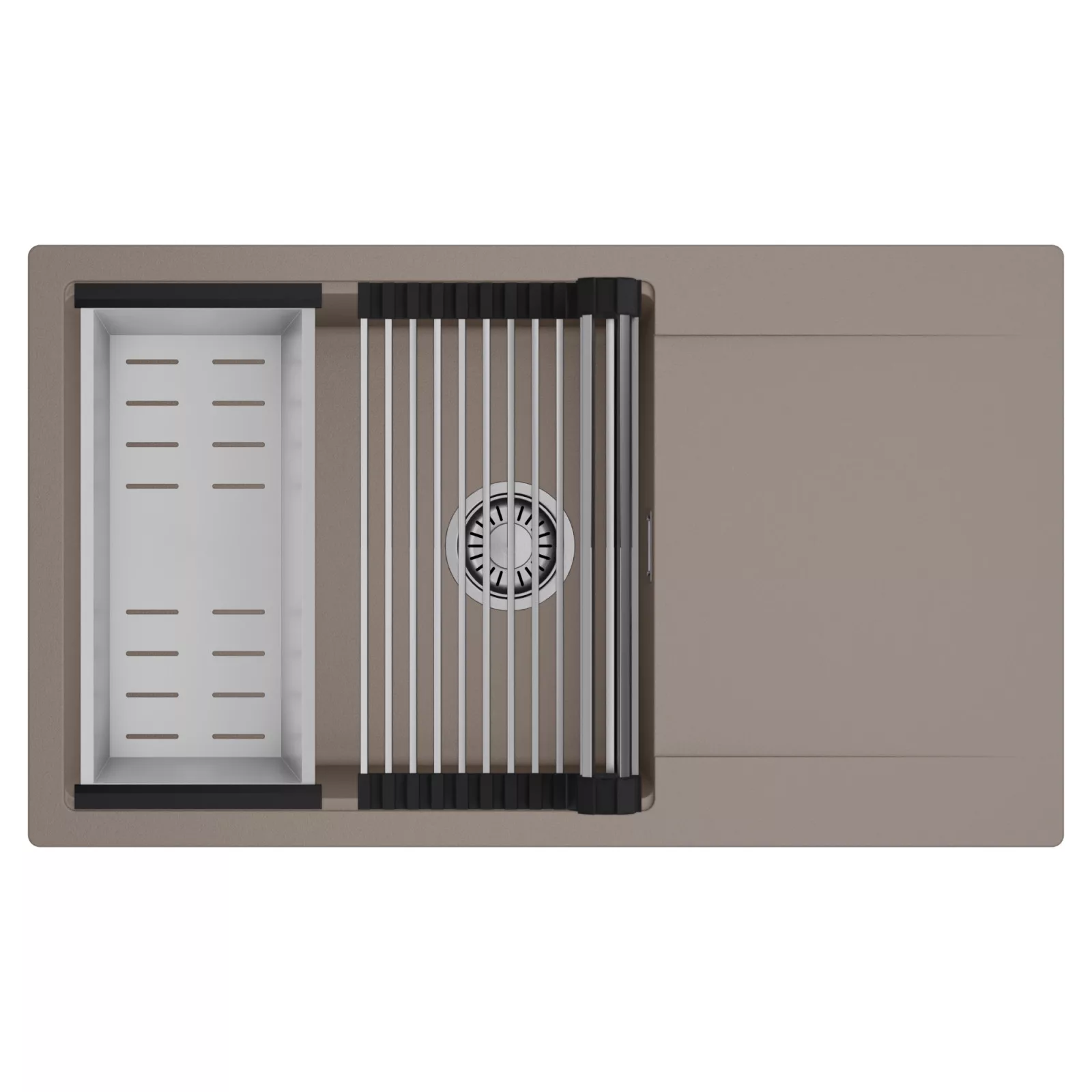 HD Onyx Tortora 86-XL egymedencés mosogatótálca szett, csepegtetőráccsal és kosárral, tortora
