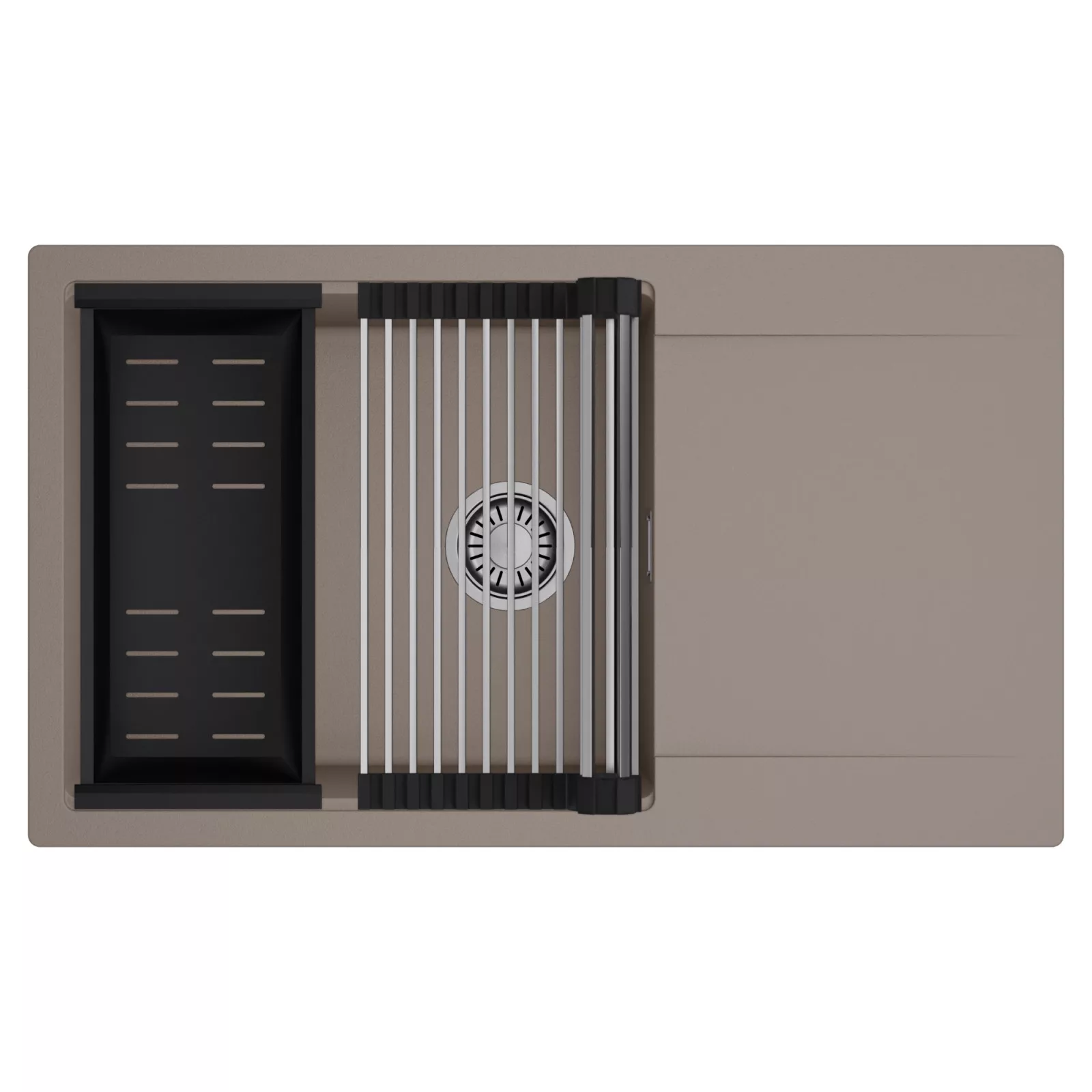 HD Onyx Tortora 86-XL egymedencés mosogatótálca szett, csepegtetőráccsal és kosárral, tortora