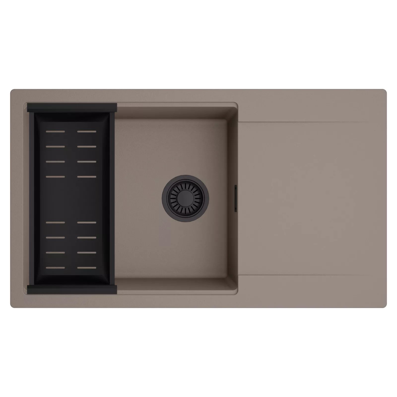 HD Onyx Tortora 86-XL egymedencés mosogatótálca szett, csepegtetőkosárral, tortora
