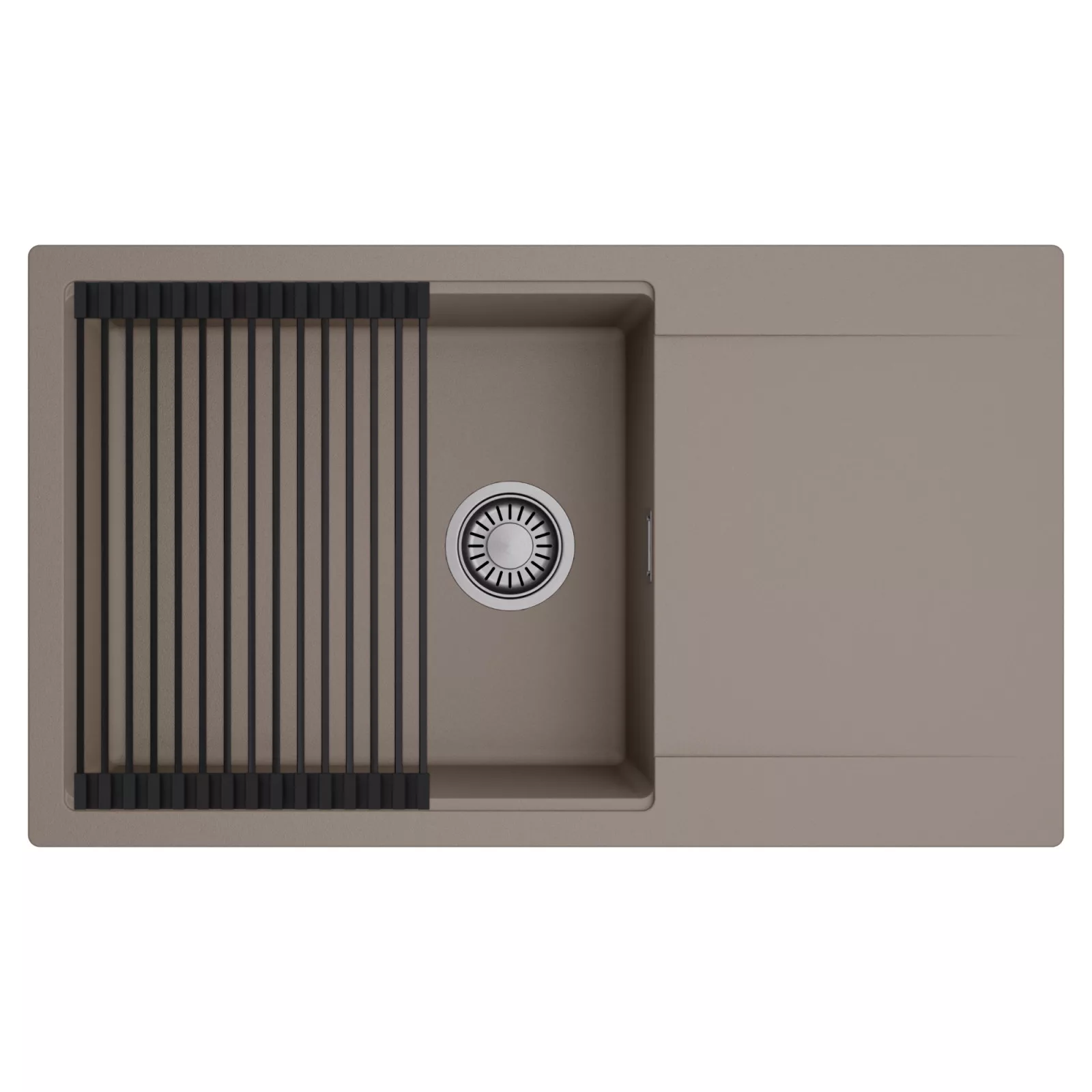 HD Onyx Tortora 86-XL egymedencés mosogatótálca szett, csepegtetőráccsal, tortora
