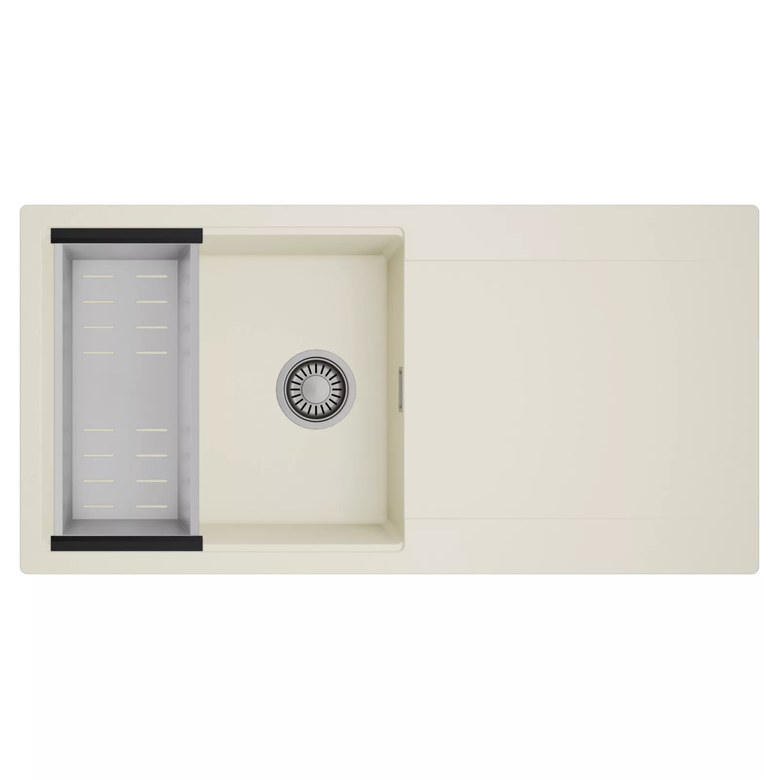 HD Onyx White 100 egymedencés mosogatótálca szett, csepegtetőkosárral, tört fehér