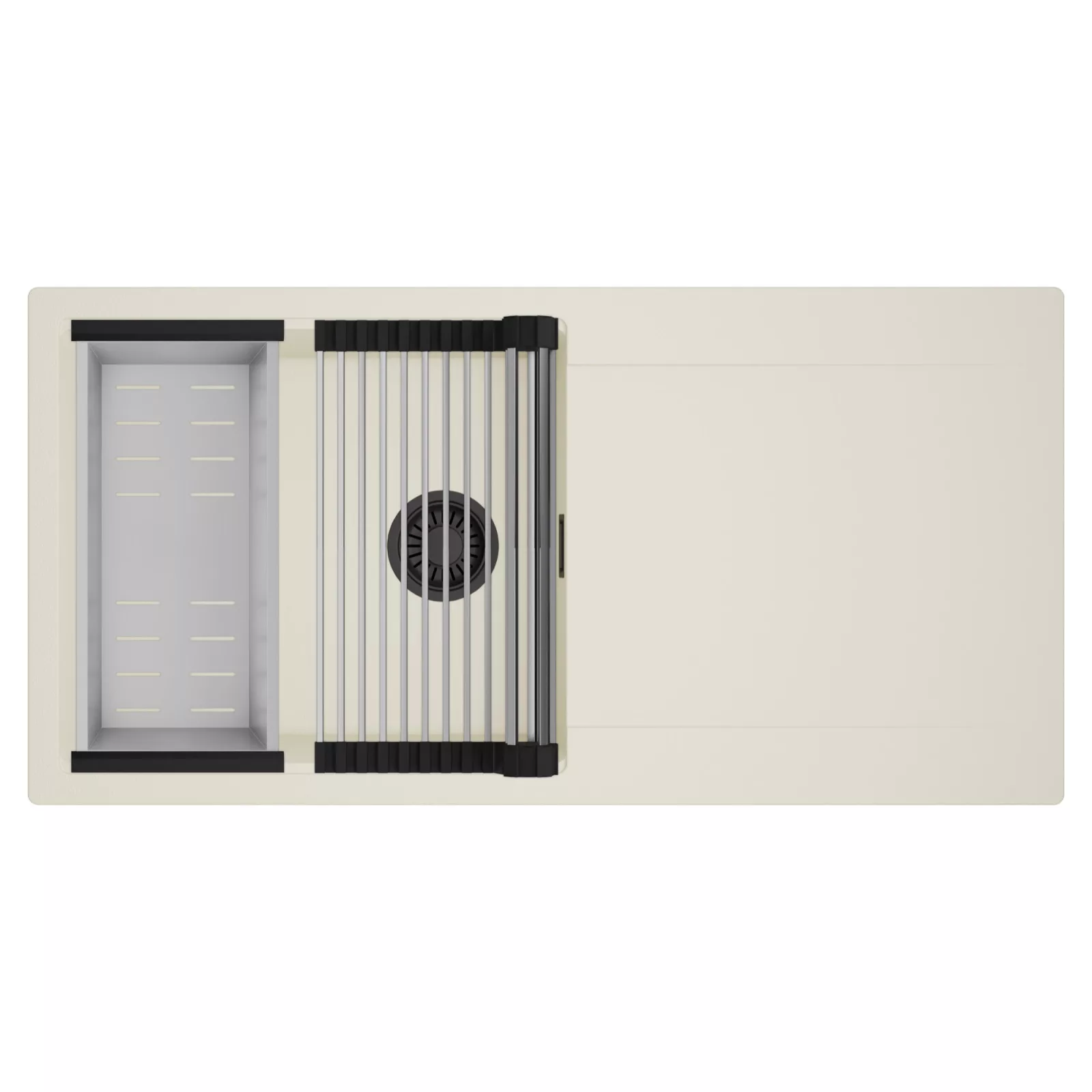 HD Onyx White 100 egymedencés mosogatótálca szett, csepegtetőráccsal és kosárral, tört fehér