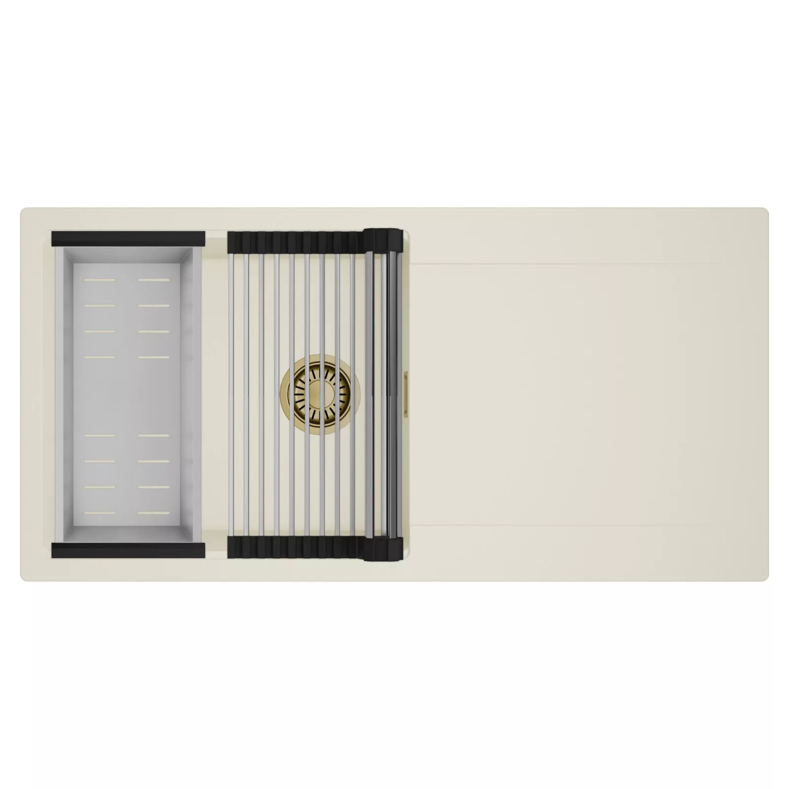 HD Onyx White 100 egymedencés mosogatótálca szett, csepegtetőráccsal és kosárral, tört fehér