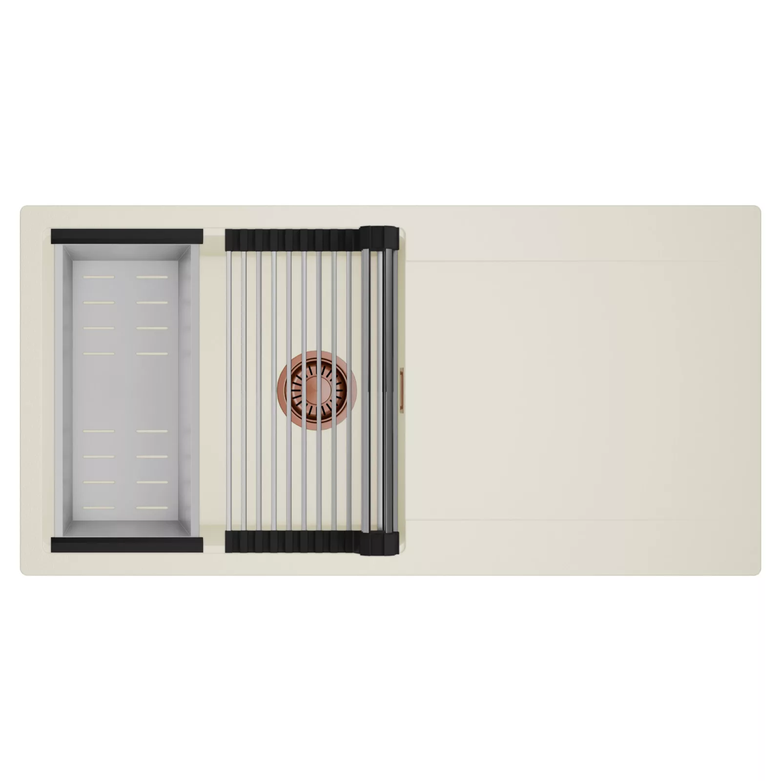 HD Onyx White 100 egymedencés mosogatótálca szett, csepegtetőráccsal és kosárral, tört fehér