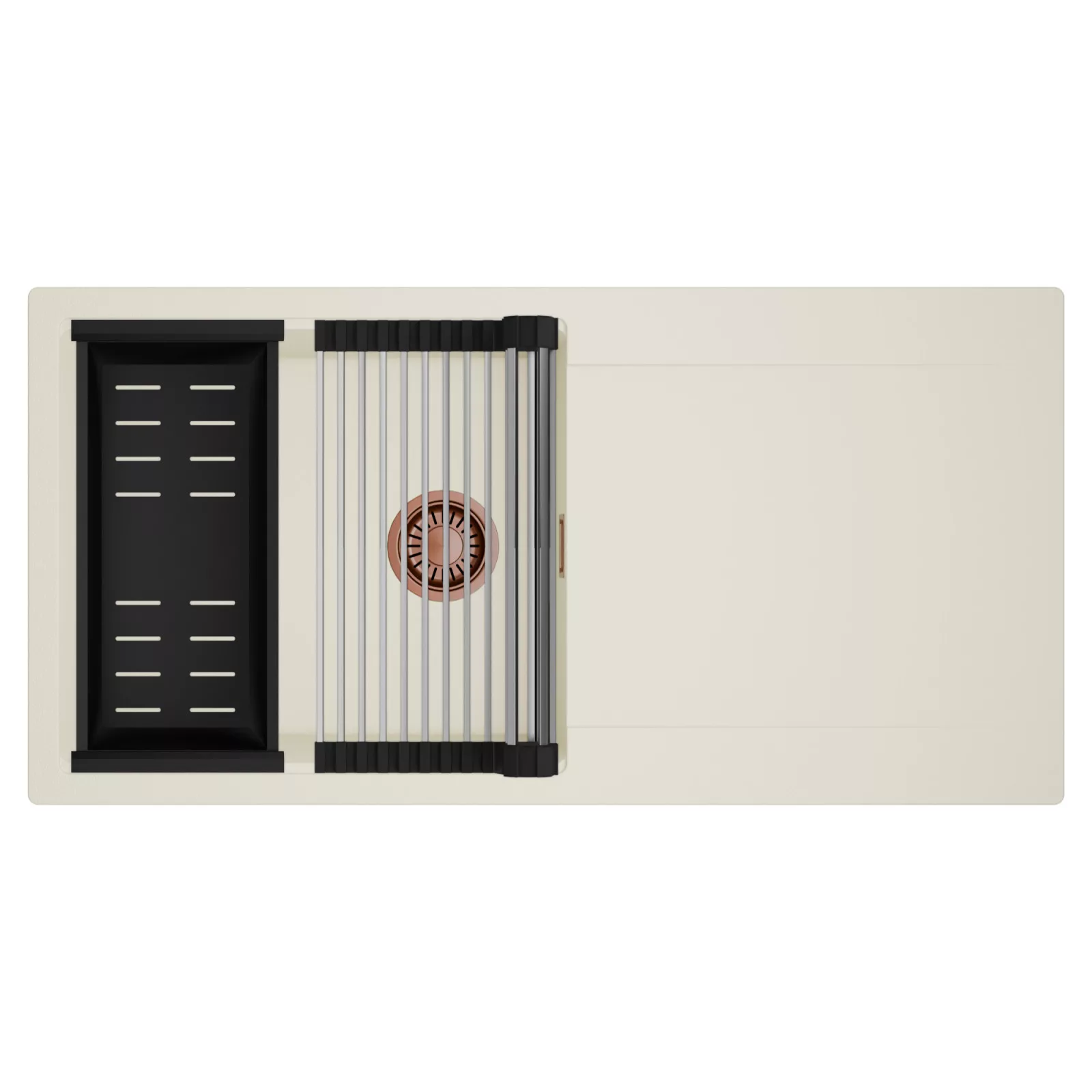 HD Onyx White 100 egymedencés mosogatótálca szett, csepegtetőráccsal és kosárral, tört fehér
