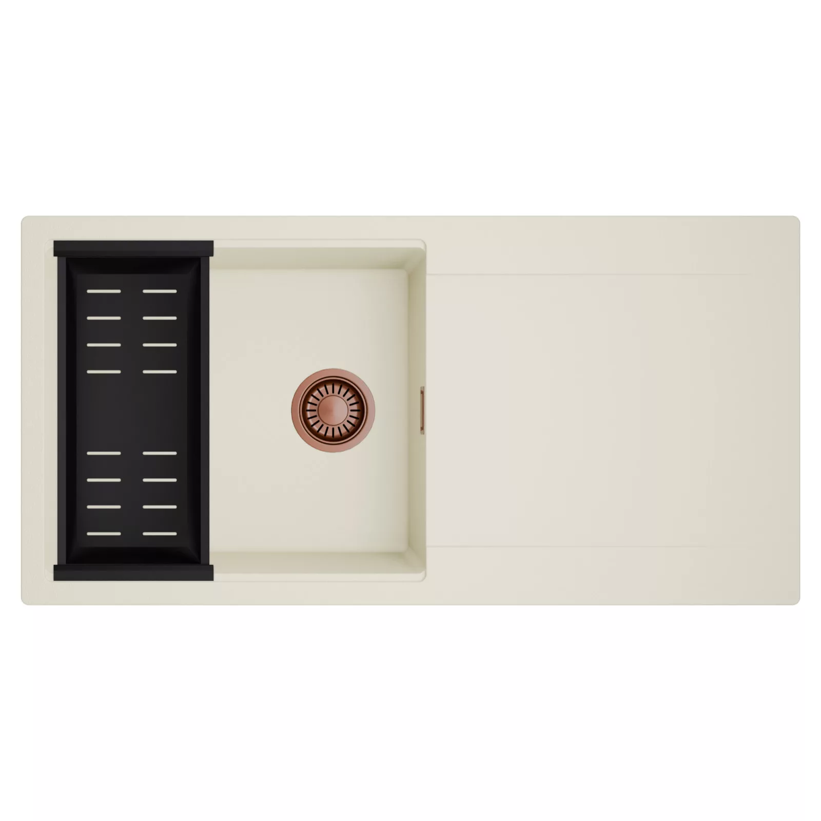 HD Onyx White 100 egymedencés mosogatótálca szett, csepegtetőkosárral, tört fehér