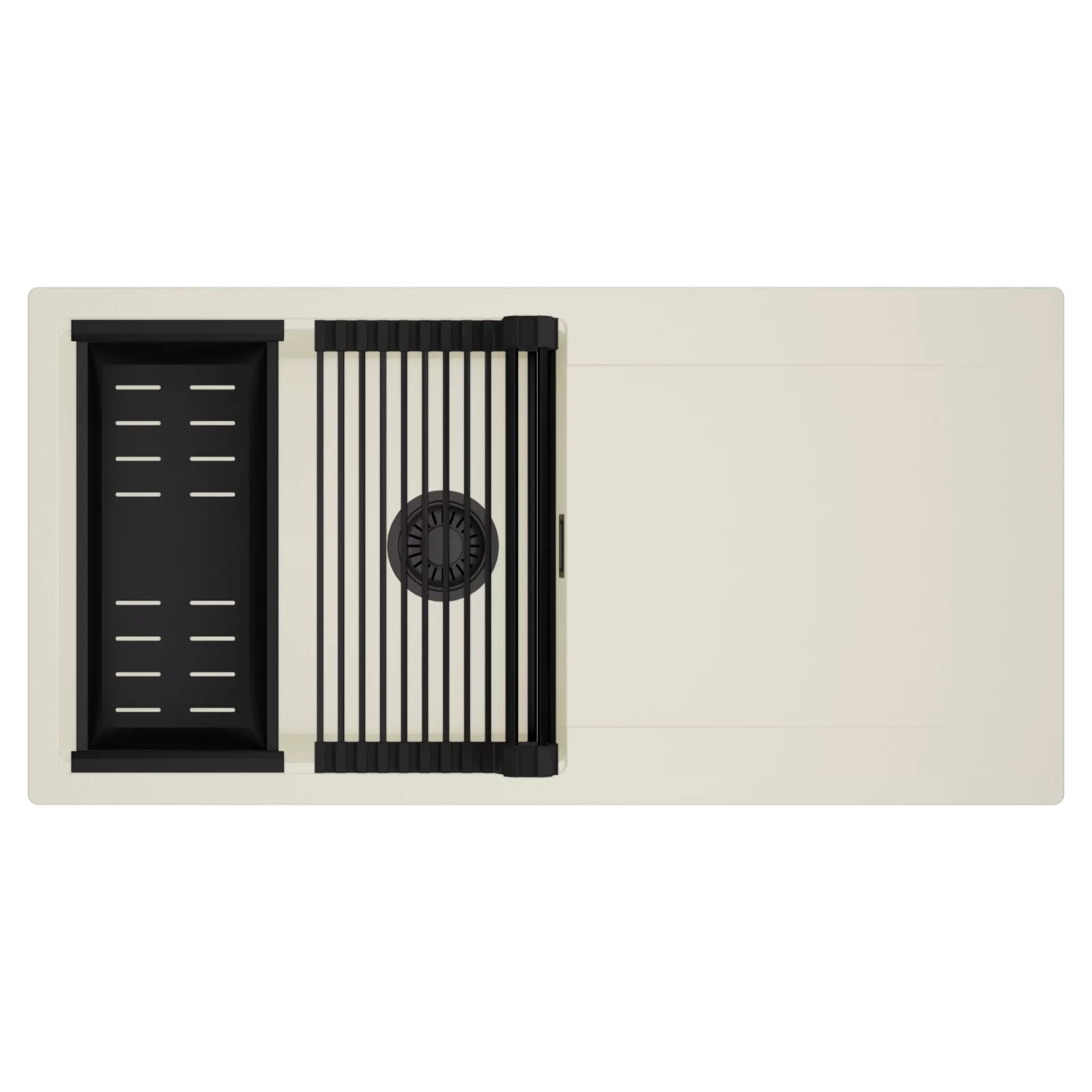 HD Onyx White 100 egymedencés mosogatótálca szett, csepegtetőráccsal és kosárral, tört fehér