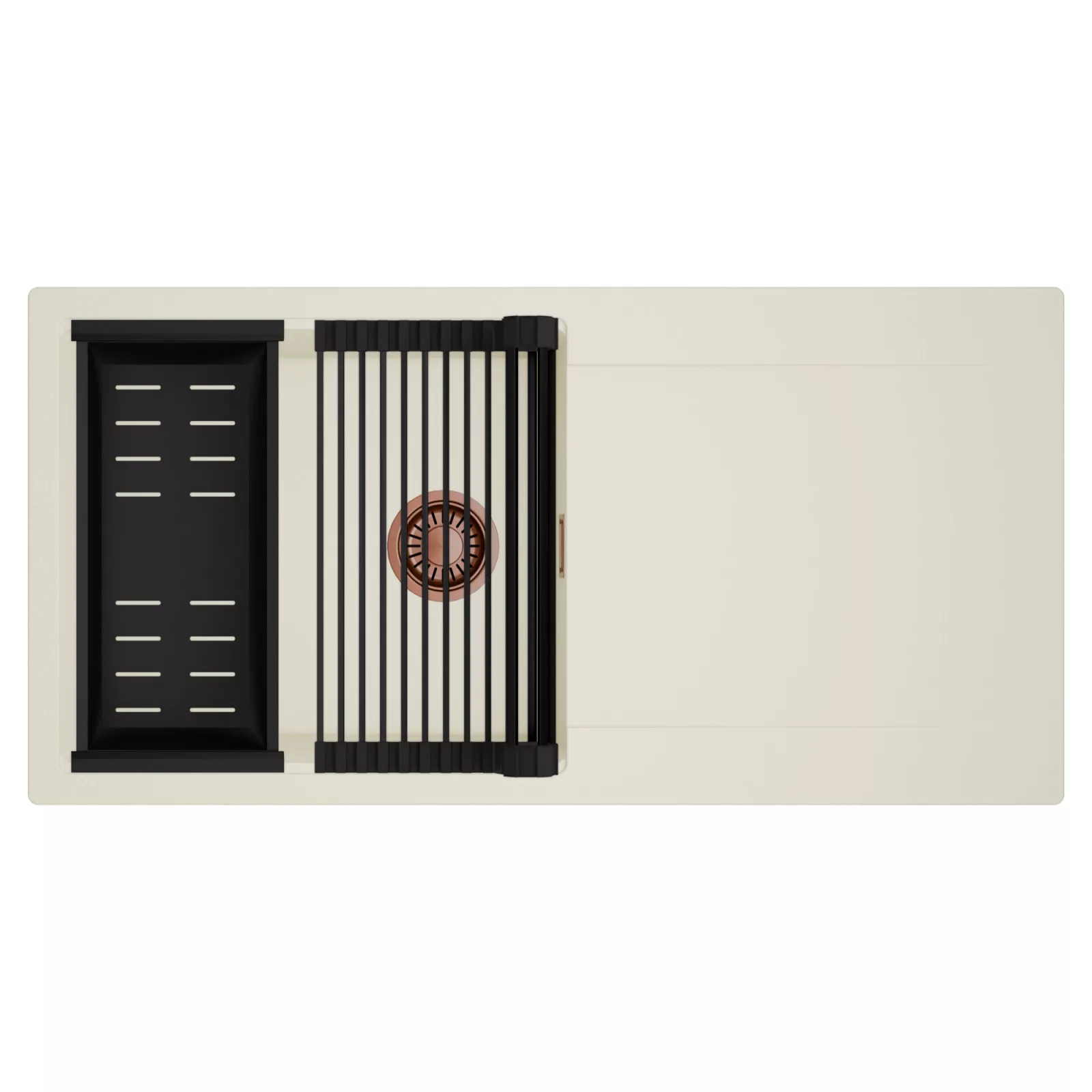 HD Onyx White 100 egymedencés mosogatótálca szett, csepegtetőráccsal és kosárral, tört fehér