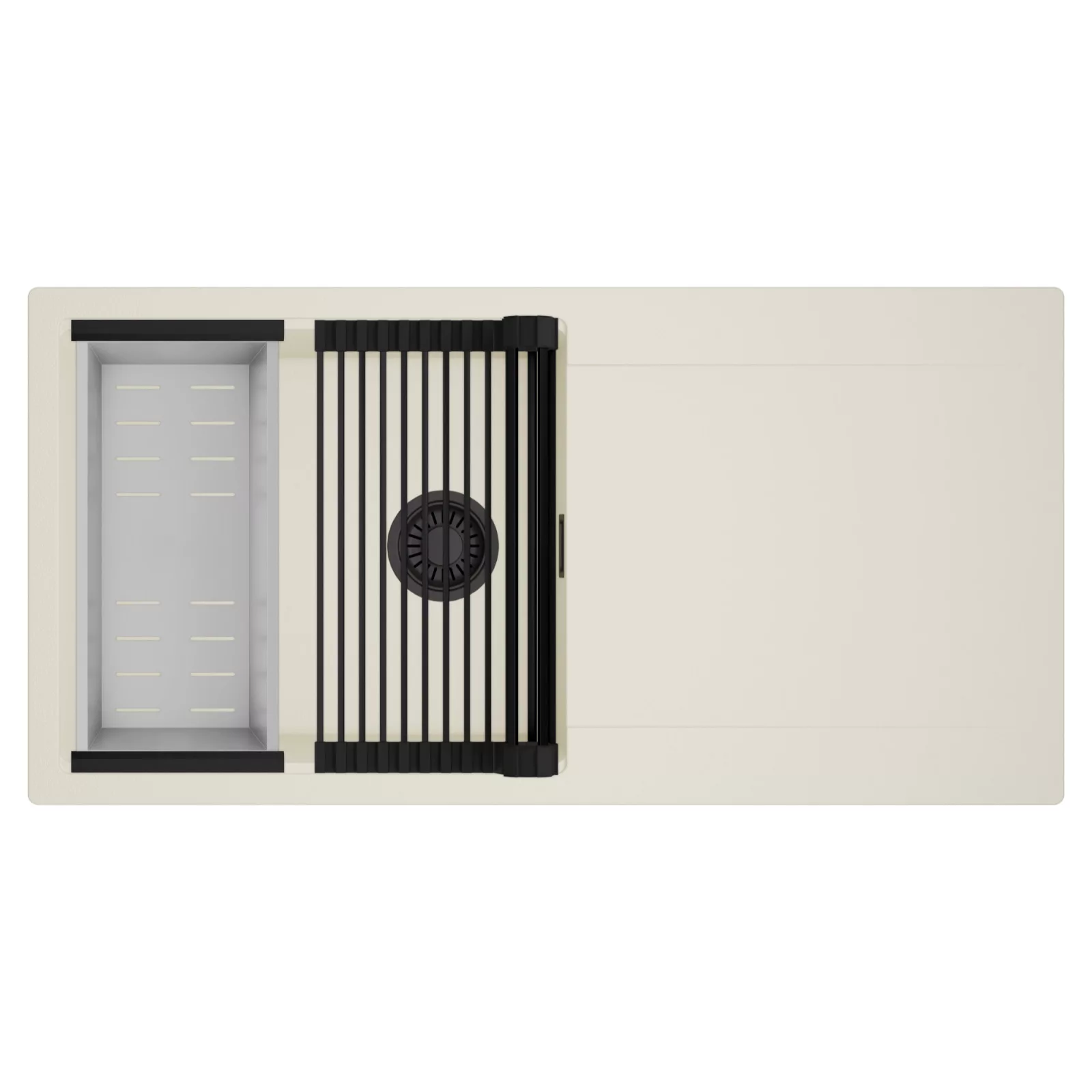 HD Onyx White 100 egymedencés mosogatótálca szett, csepegtetőráccsal és kosárral, tört fehér