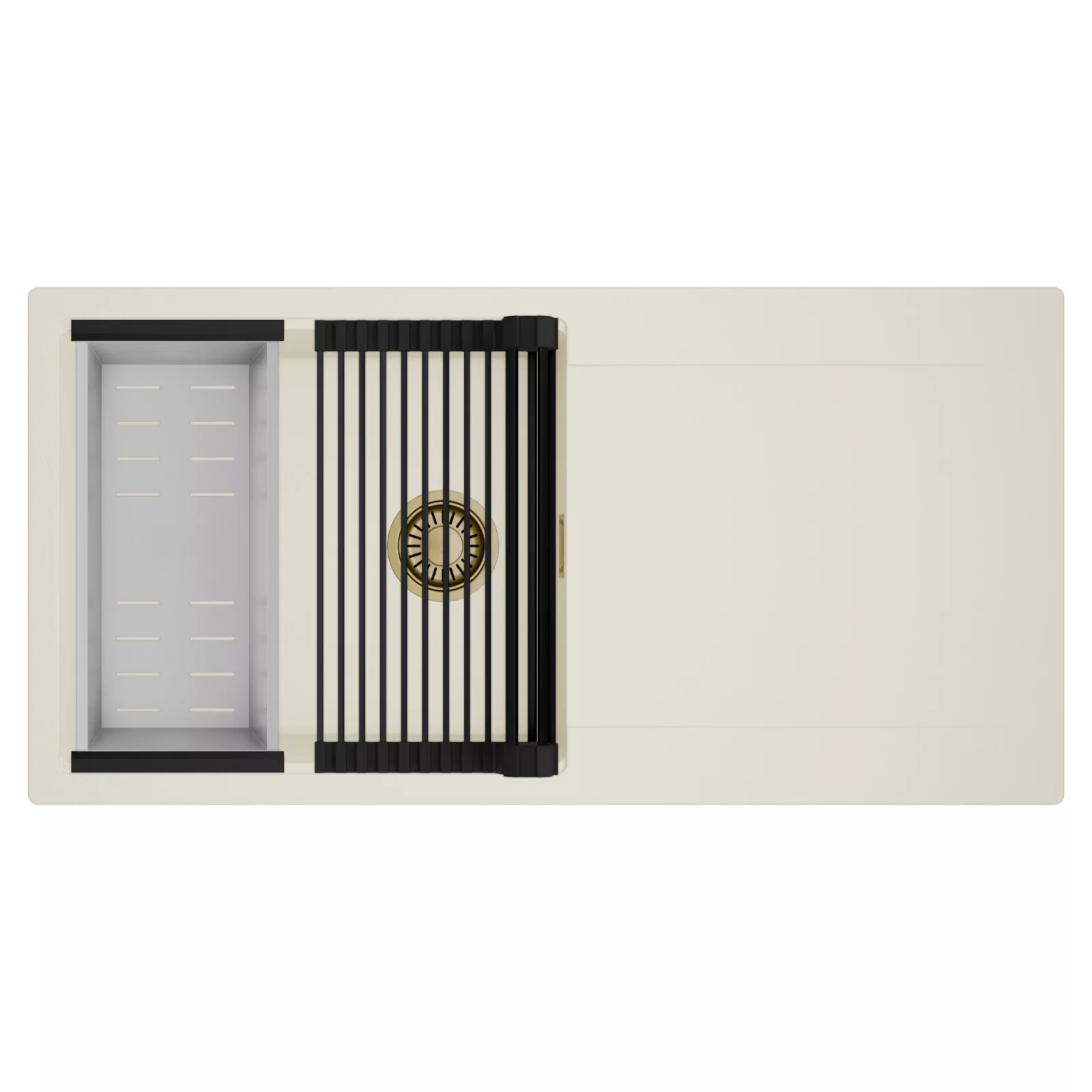 HD Onyx White 100 egymedencés mosogatótálca szett, csepegtetőráccsal és kosárral, tört fehér