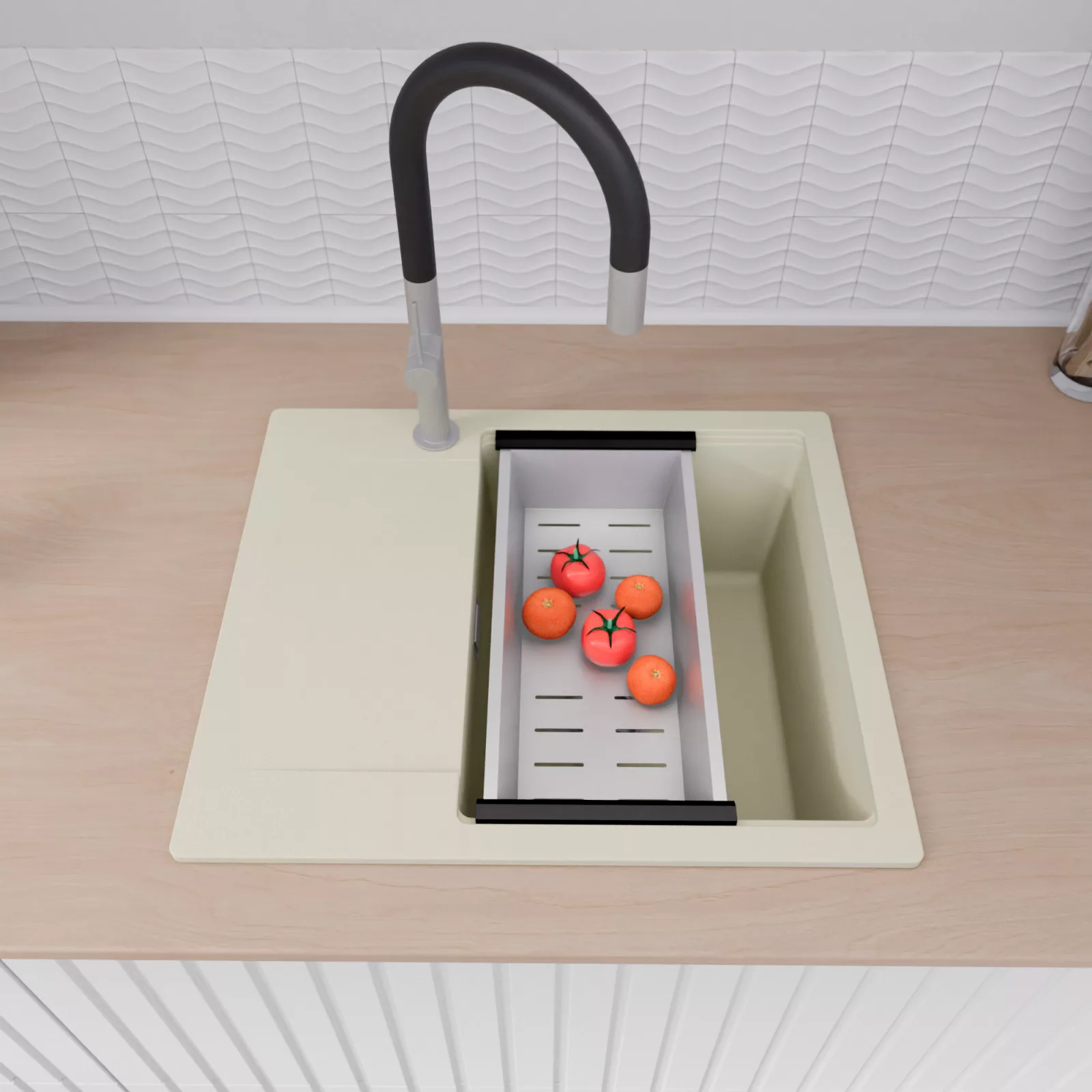 A mosogató prémium minőségű gránit kompozitból készült. Letisztult megjelenése mellett rendkívül praktikus, így bármilyen stílusú konyhába harmonikusan illeszkedik. A strapabíró gránit anyag hosszú távon is megbízható használatot garantál.