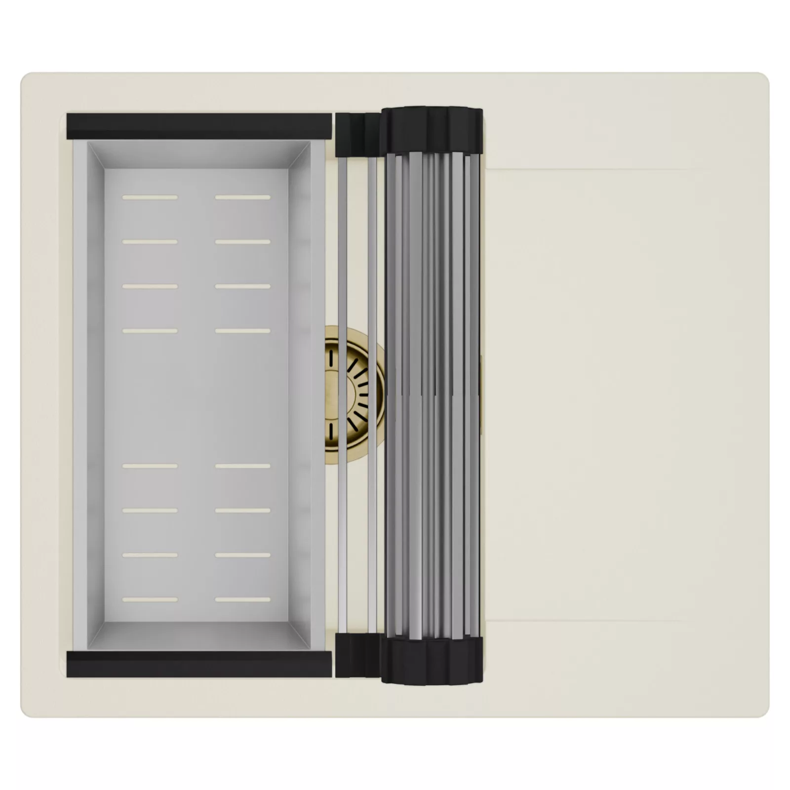 HD Onyx White 58 egymedencés mosogatótálca szett, csepegtetőráccsal és kosárral, tört fehér