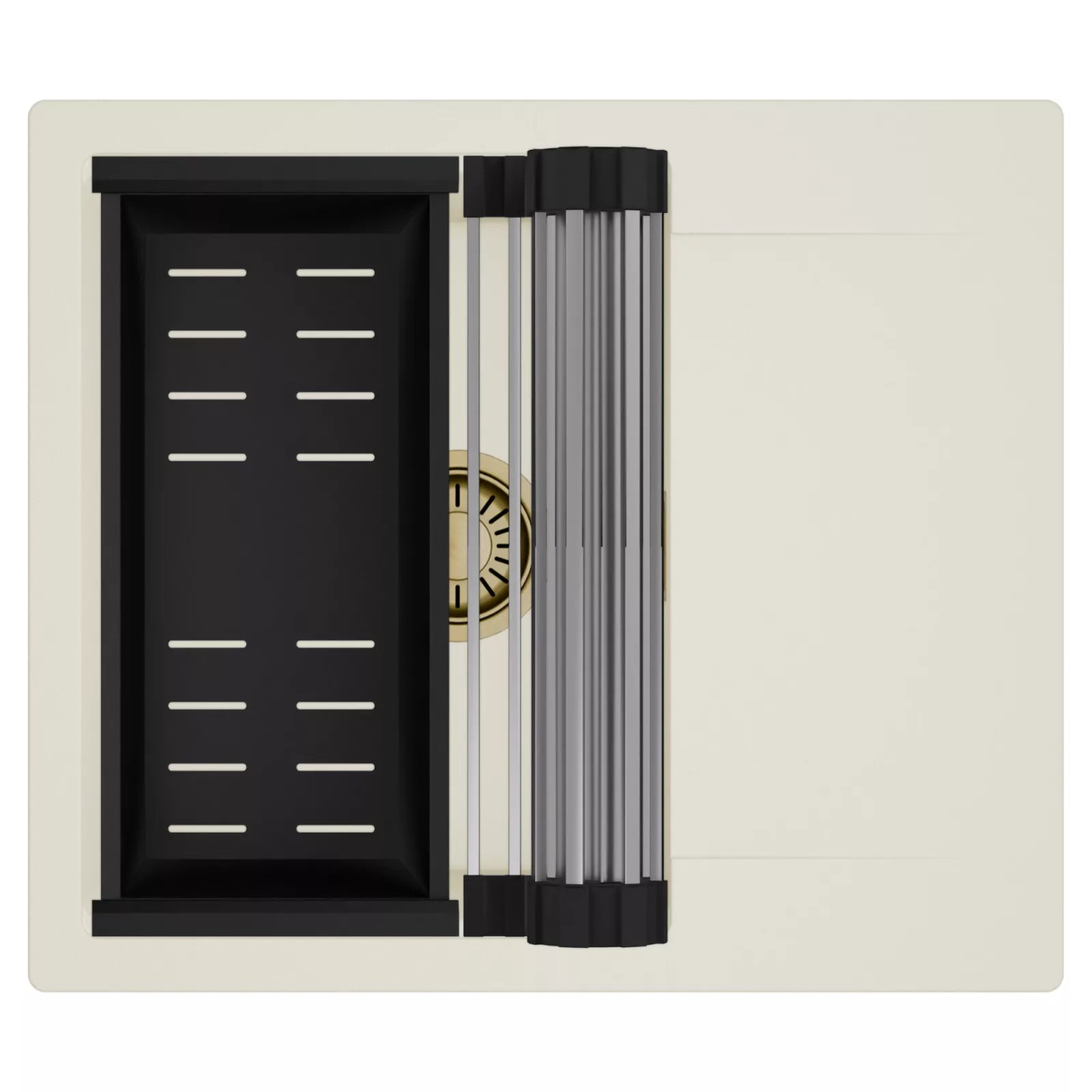 HD Onyx White 58 egymedencés mosogatótálca szett, csepegtetőráccsal és kosárral, tört fehér