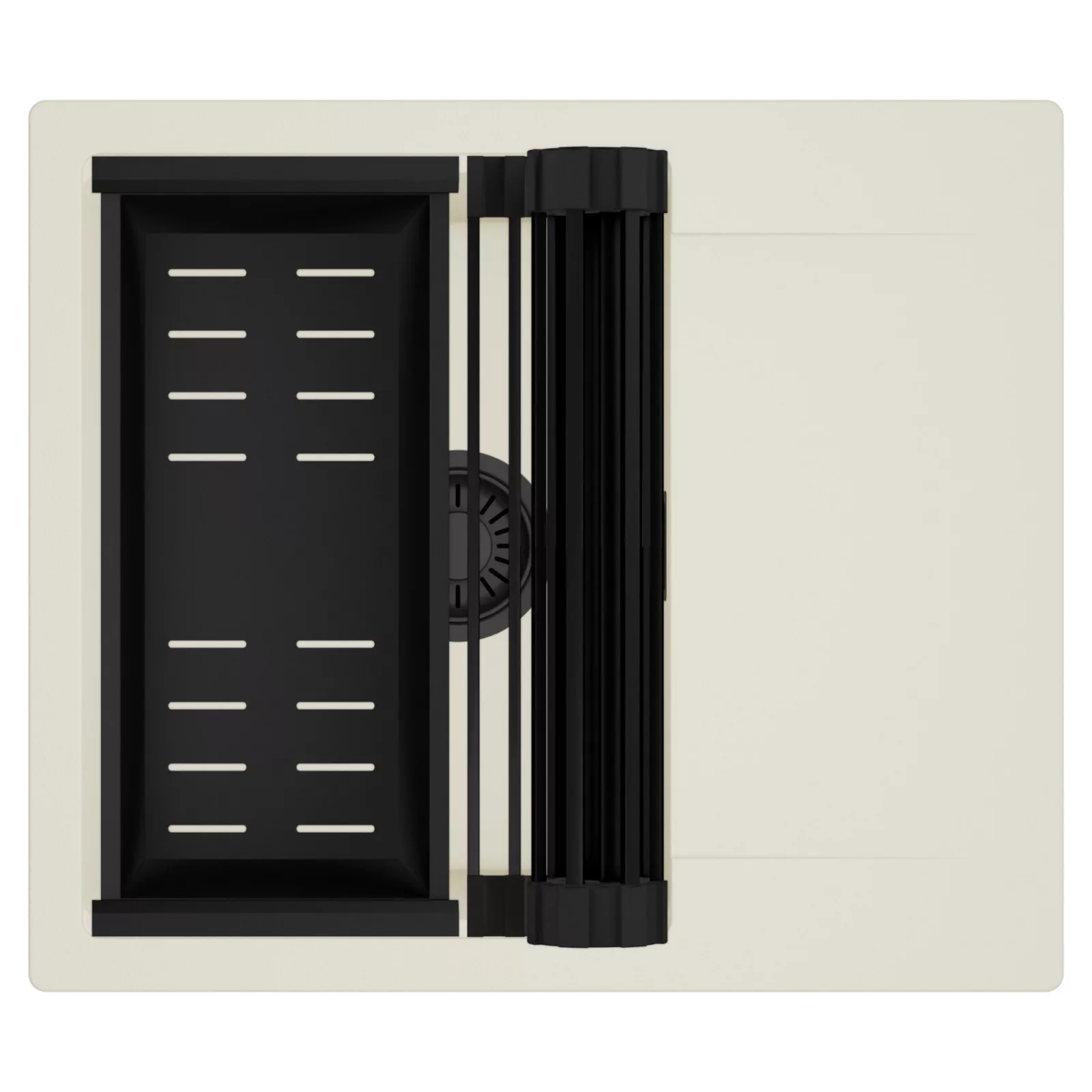 HD Onyx White 58 egymedencés mosogatótálca szett, csepegtetőráccsal és kosárral, tört fehér