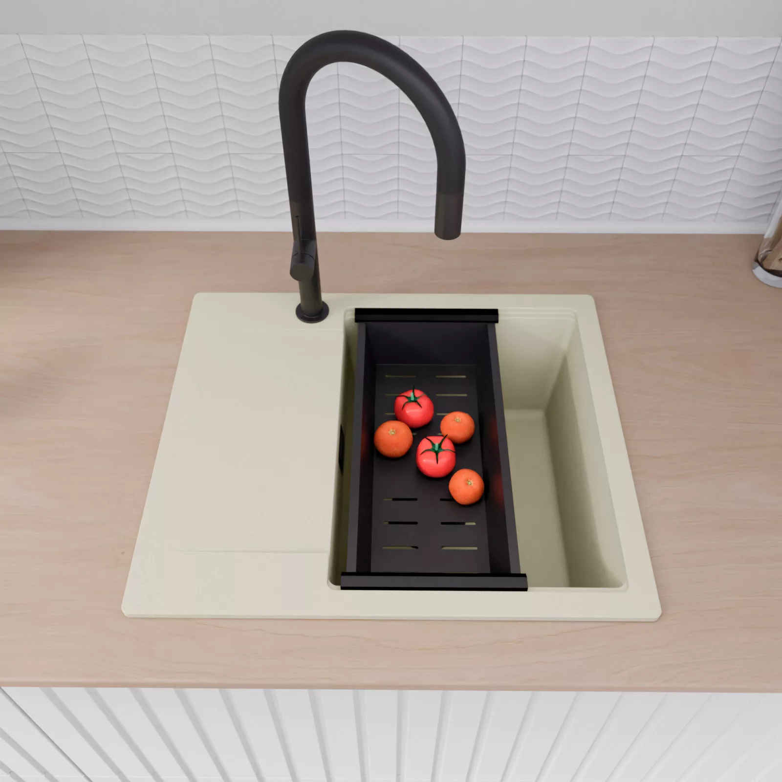 A mosogató prémium minőségű gránit kompozitból készült. Letisztult megjelenése mellett rendkívül praktikus, így bármilyen stílusú konyhába harmonikusan illeszkedik. A strapabíró gránit anyag hosszú távon is megbízható használatot garantál.
