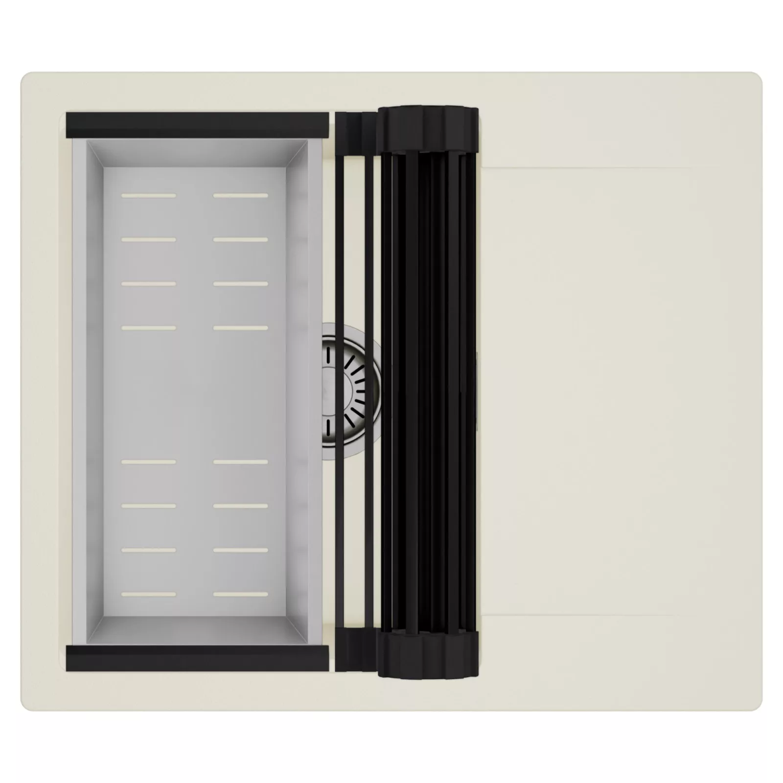 HD Onyx White 58 egymedencés mosogatótálca szett, csepegtetőráccsal és kosárral, tört fehér