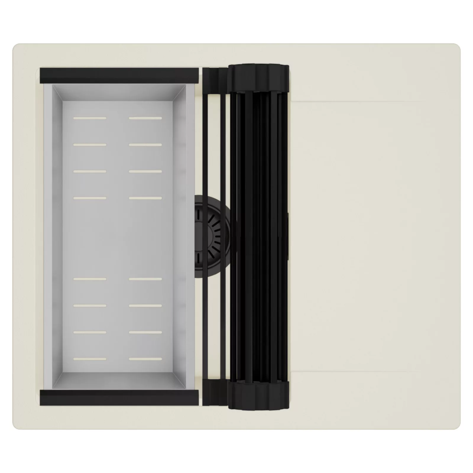 HD Onyx White 58 egymedencés mosogatótálca szett, csepegtetőráccsal és kosárral, tört fehér