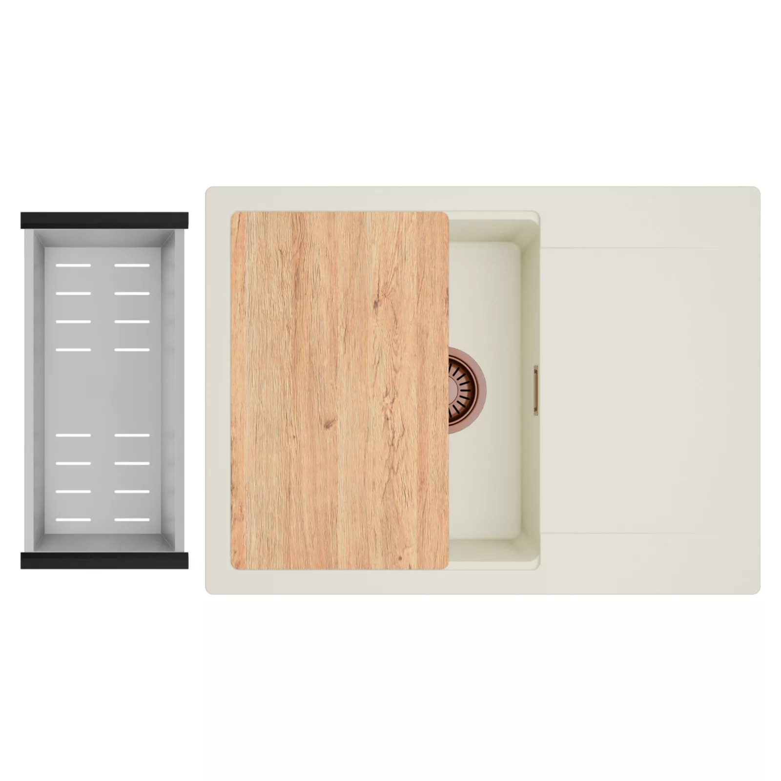 HD Onyx White 68-XL egymedencés mosogatótálca szett, vágódeszkával és csepegtetőkosárral, tört fehér
