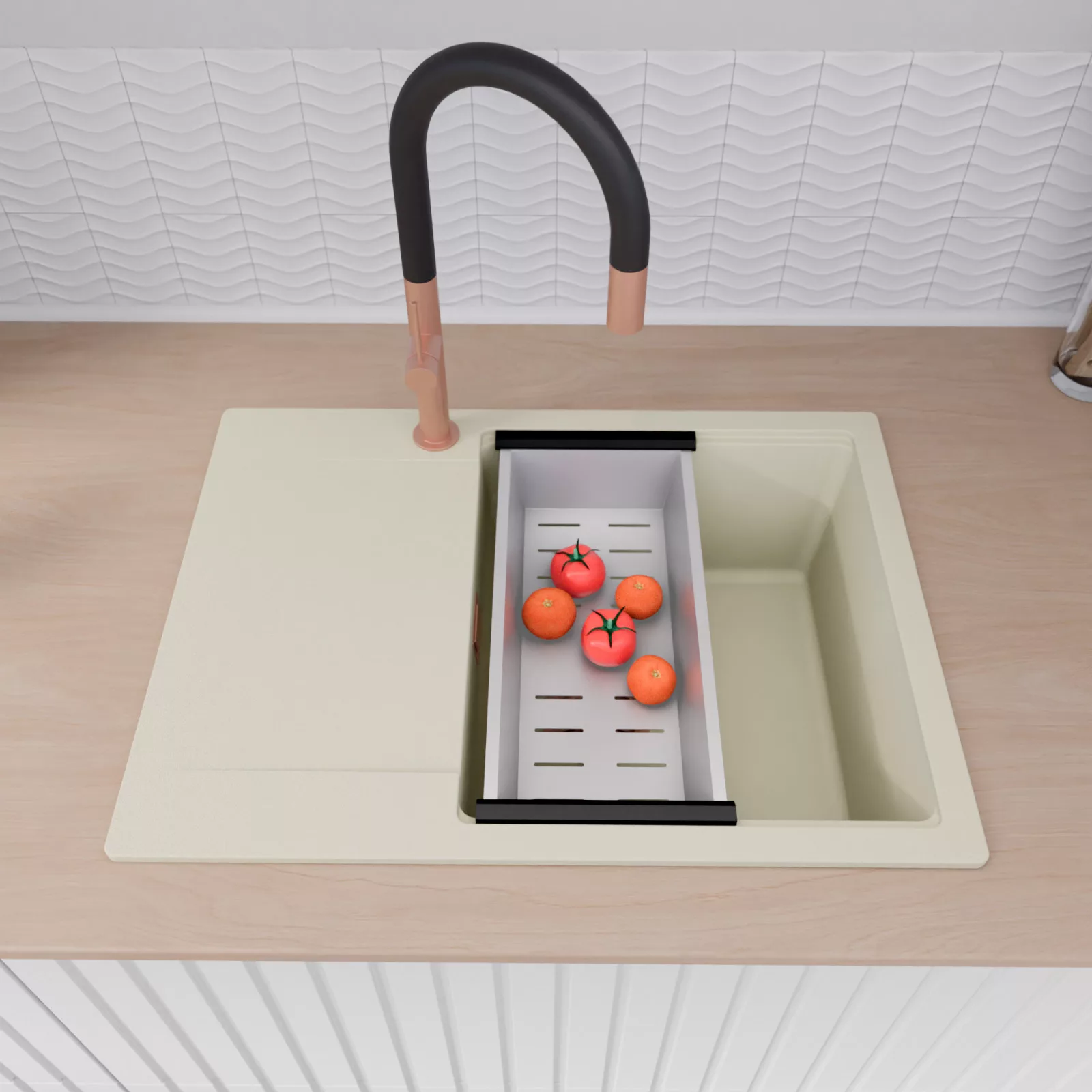 A HomeDepo SmartEdge Többfunkciós Peremrendszer egy intelligensen kialakított peremmegoldás, amely a mosogatót kompakt, mégis teljes értékű konyhai térré alakítja a mindennapok során. A speciális peremkialakítás lehetővé teszi a vágódeszka, a feltekerhető csepegtető rács, a gyümölcsmosó és a csepegtető kosár stabil, biztonságos és kényelmes elhelyezését közvetlenül a mosogató speciális belső peremén. A kiegészítők síkban csúsztathatók és szabadon kombinálhatók, így extra munkafelületet nyersz anélkül, hogy helyet foglalnál a konyhapulton – a mosogató valódi többfunkciós központtá válik.