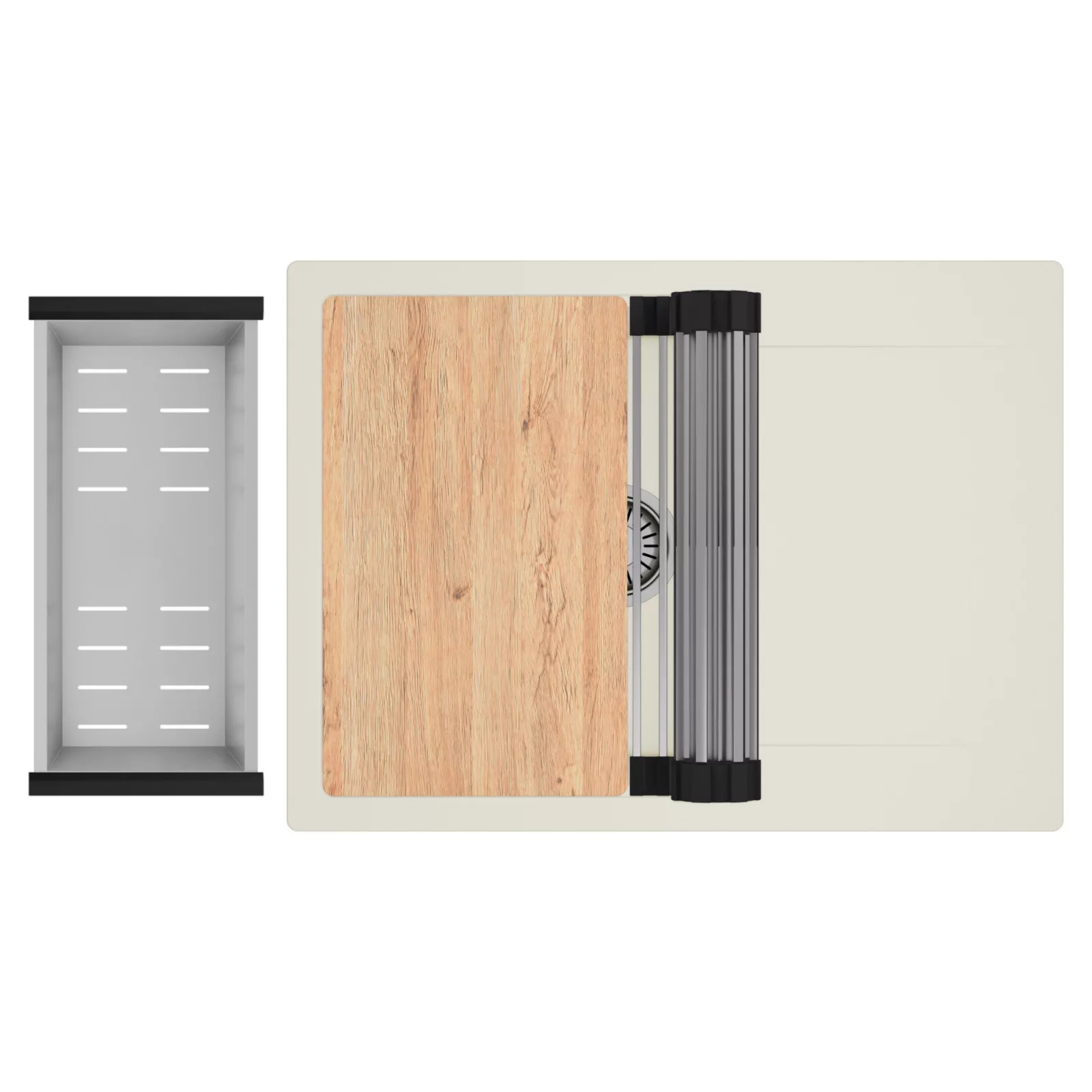 HD Onyx White 68-XL egymedencés mosogatótálca szett, vágódeszkával, csepegtetőráccsal és kosárral, tört fehér