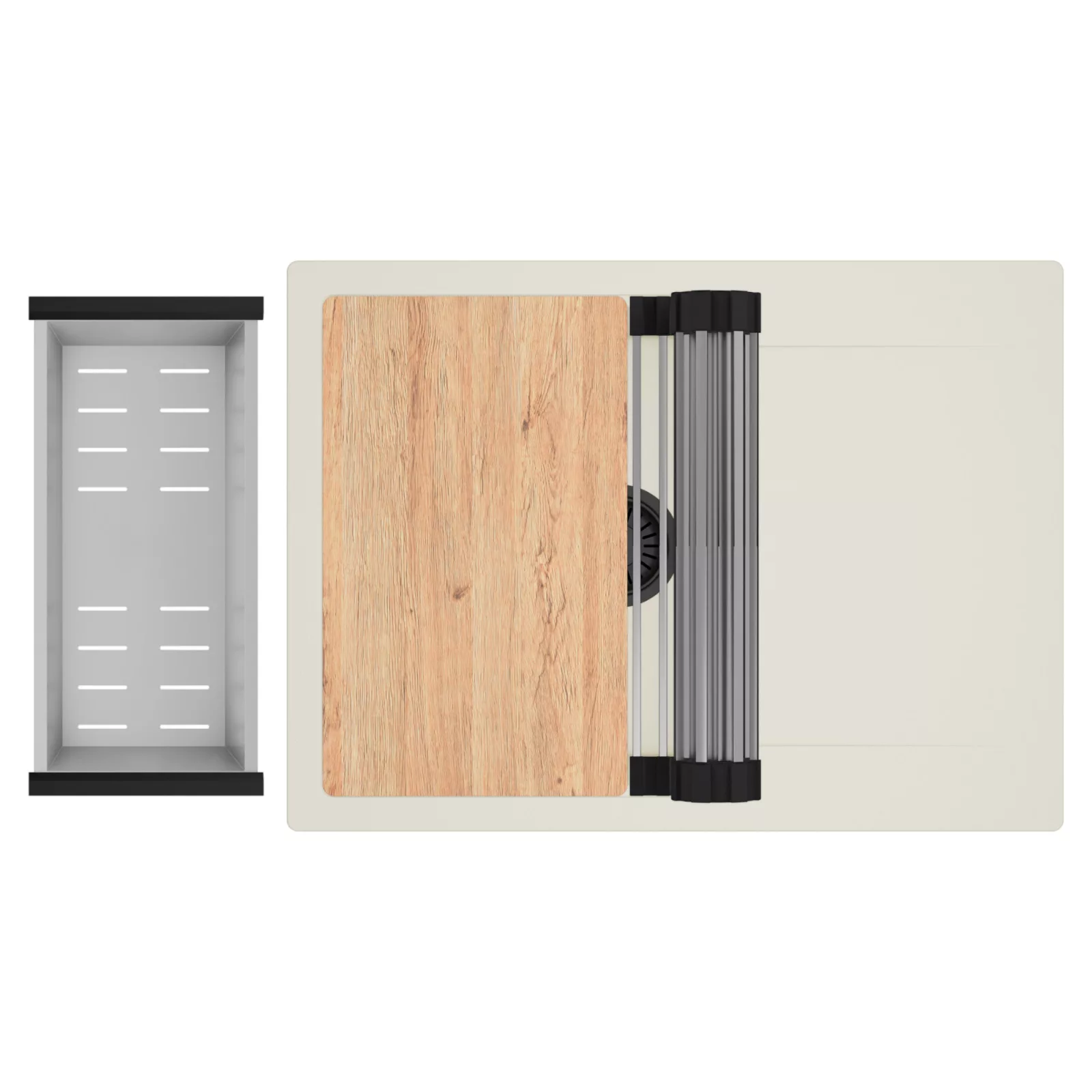 HD Onyx White 68-XL egymedencés mosogatótálca szett, vágódeszkával, csepegtetőráccsal és kosárral, tört fehér
