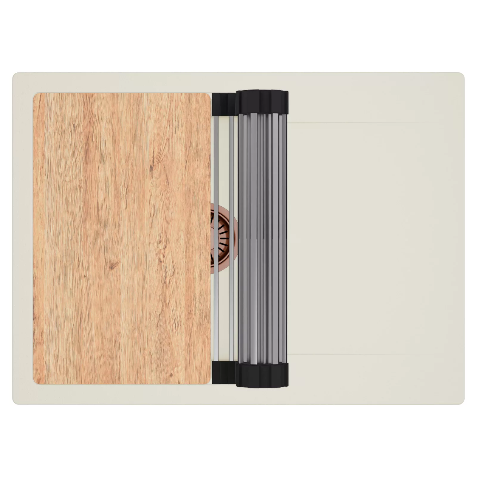 HD Onyx White 68-XL egymedencés mosogatótálca szett, vágódeszkával és csepegtetőráccsal, tört fehér
