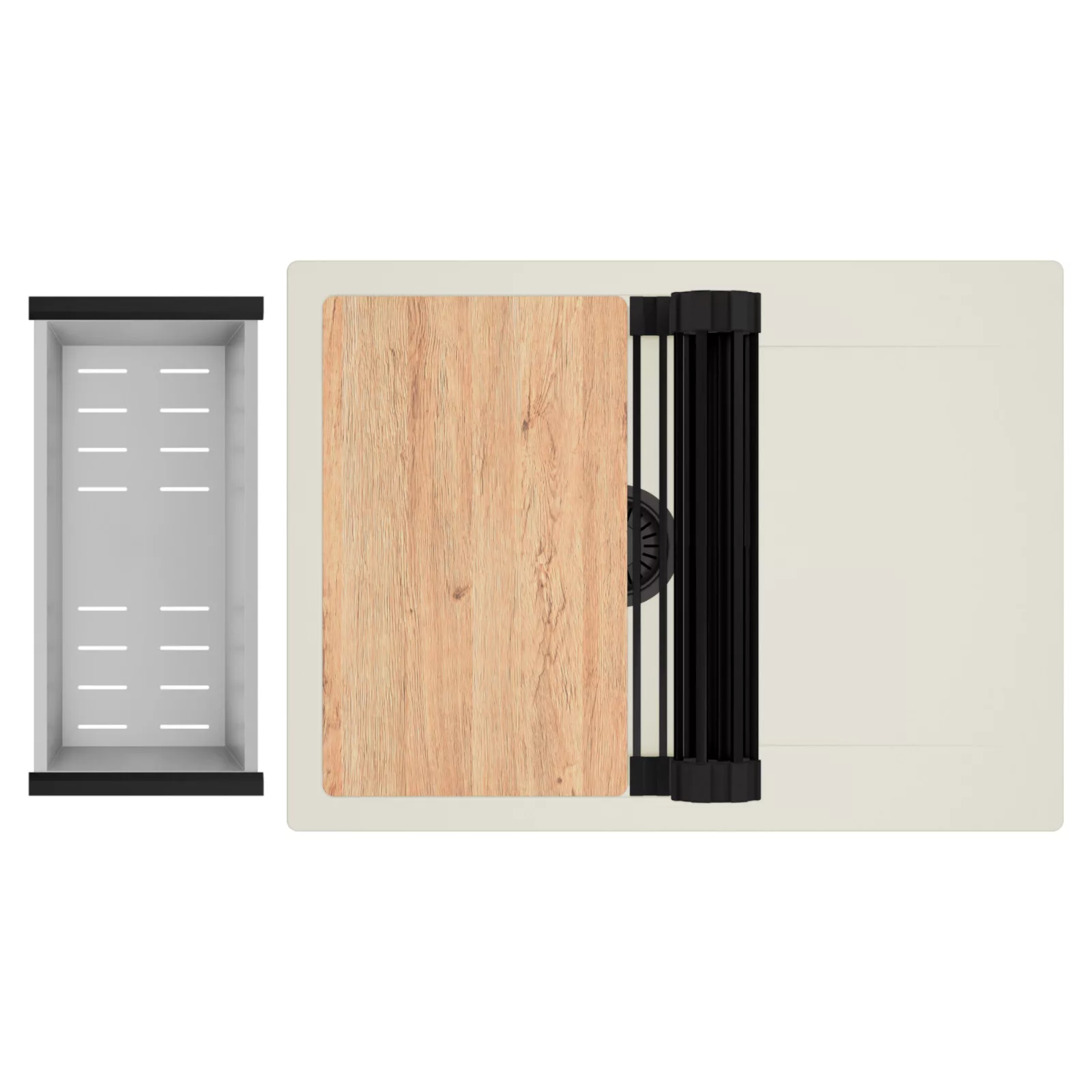 HD Onyx White 68-XL egymedencés mosogatótálca szett, vágódeszkával, csepegtetőráccsal és kosárral, tört fehér