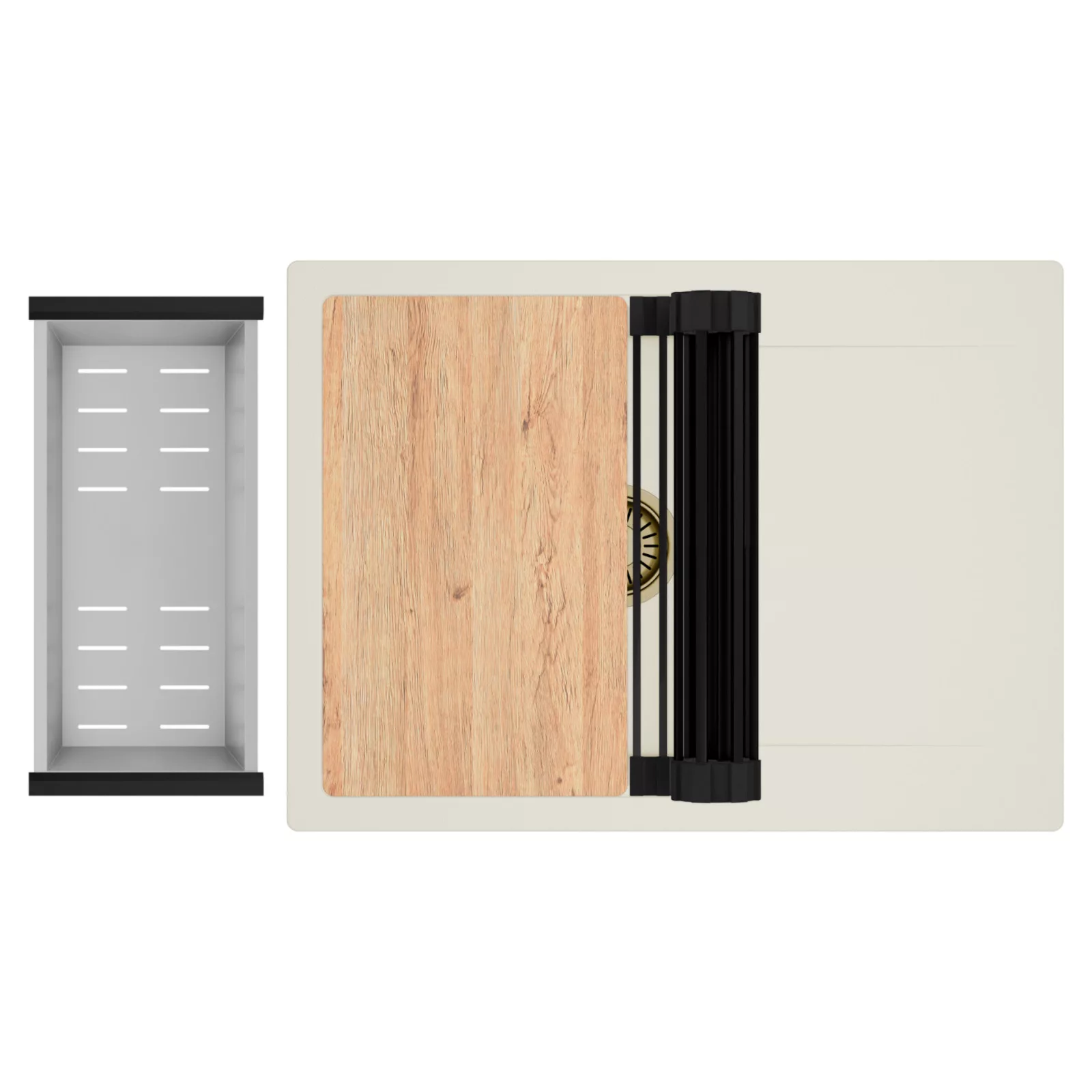 HD Onyx White 68-XL egymedencés mosogatótálca szett, vágódeszkával, csepegtetőráccsal és kosárral, tört fehér