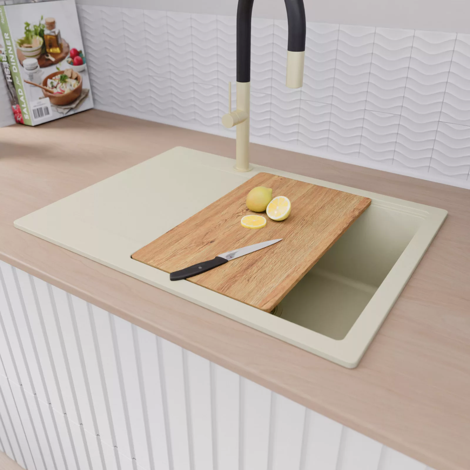 HD Onyx White 68-XL egymedencés mosogatótálca szett, vágódeszkával, tört fehér