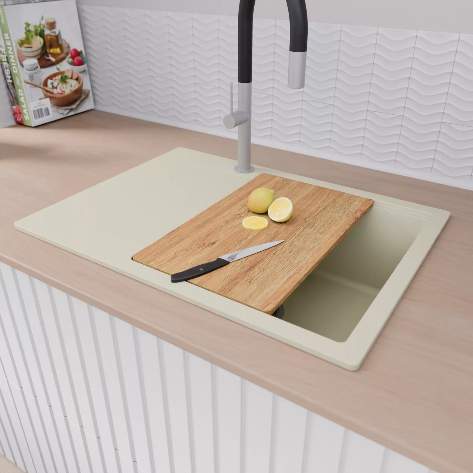Egy perem. Több funkció. Teljes értékű konyhai tér egyetlen mosogatótálcával.