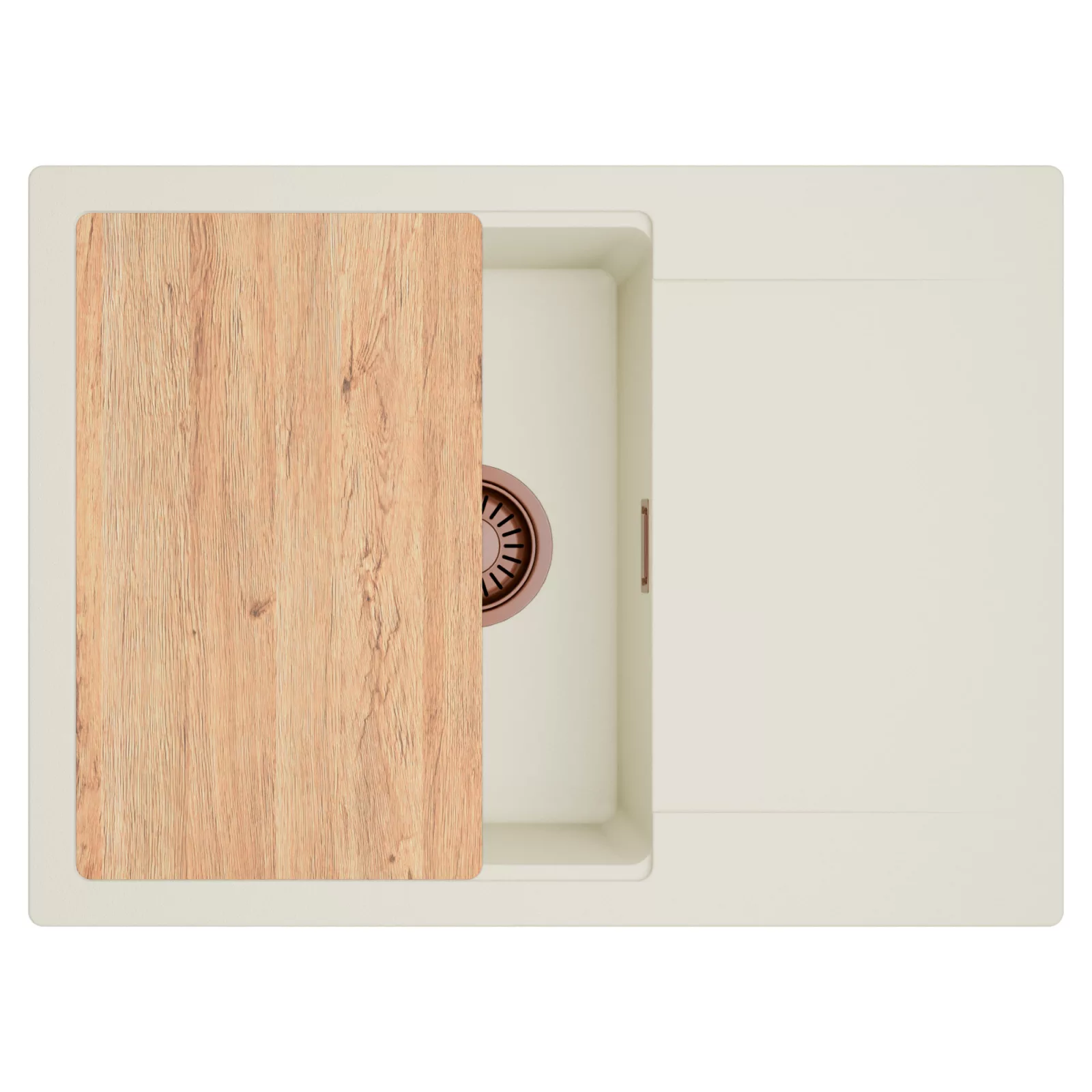 HD Onyx White 68-XL egymedencés mosogatótálca szett, vágódeszkával, tört fehér