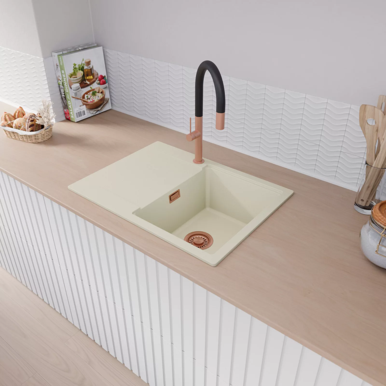 A mosogató prémium minőségű gránit kompozitból készült. Letisztult megjelenése mellett rendkívül praktikus, így bármilyen stílusú konyhába harmonikusan illeszkedik. A strapabíró gránit anyag hosszú távon is megbízható használatot garantál.