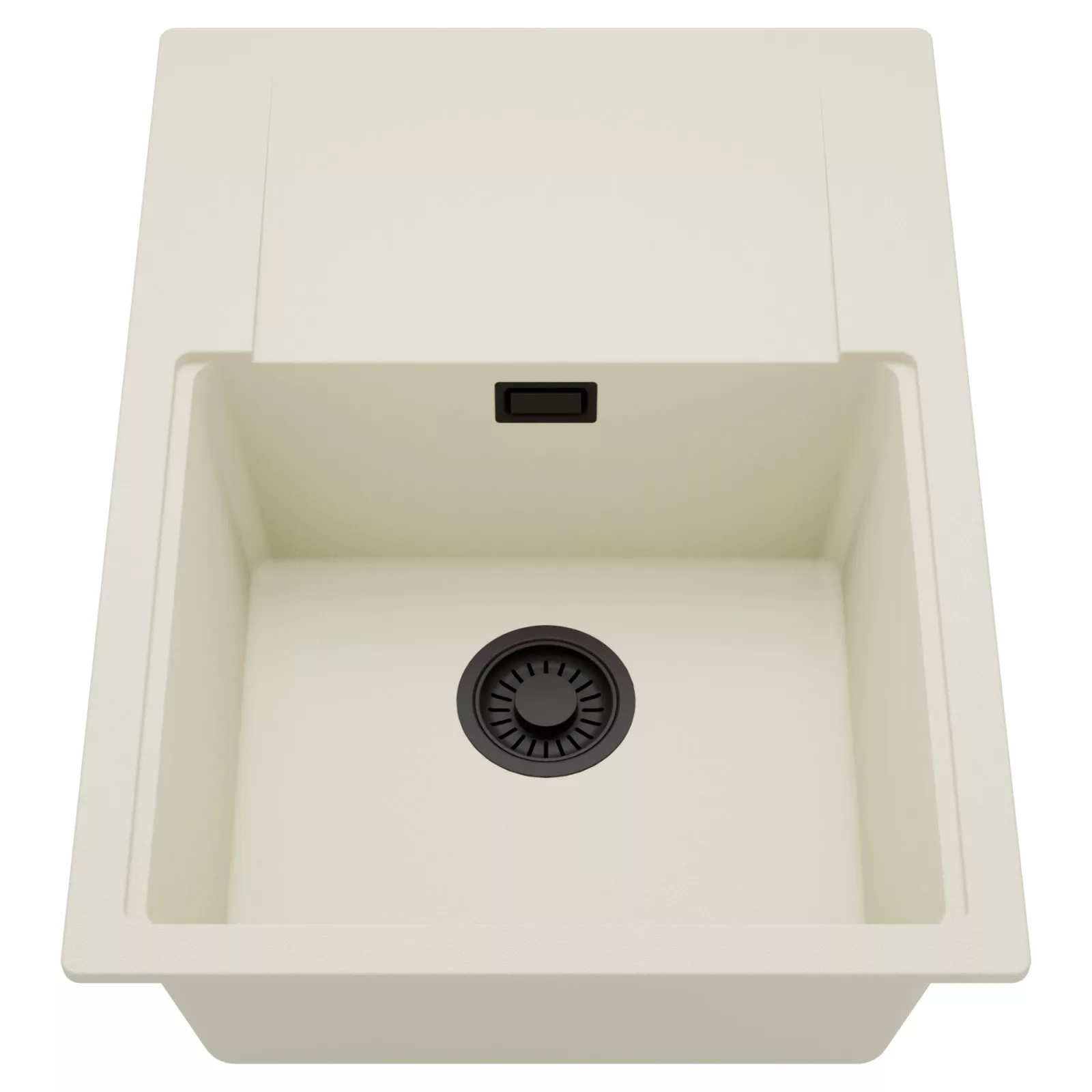 A mosogató prémium minőségű gránit kompozitból készült, amely kiváló ellenállást biztosít a mindennapi használat során keletkező karcolásokkal szemben. A strapabíró gránit felület hosszú távon is megőrzi esztétikus megjelenését, így a mosogató intenzív igénybevétel mellett is megmarad újszerű állapotában.