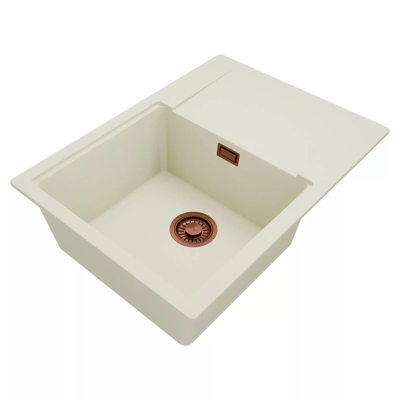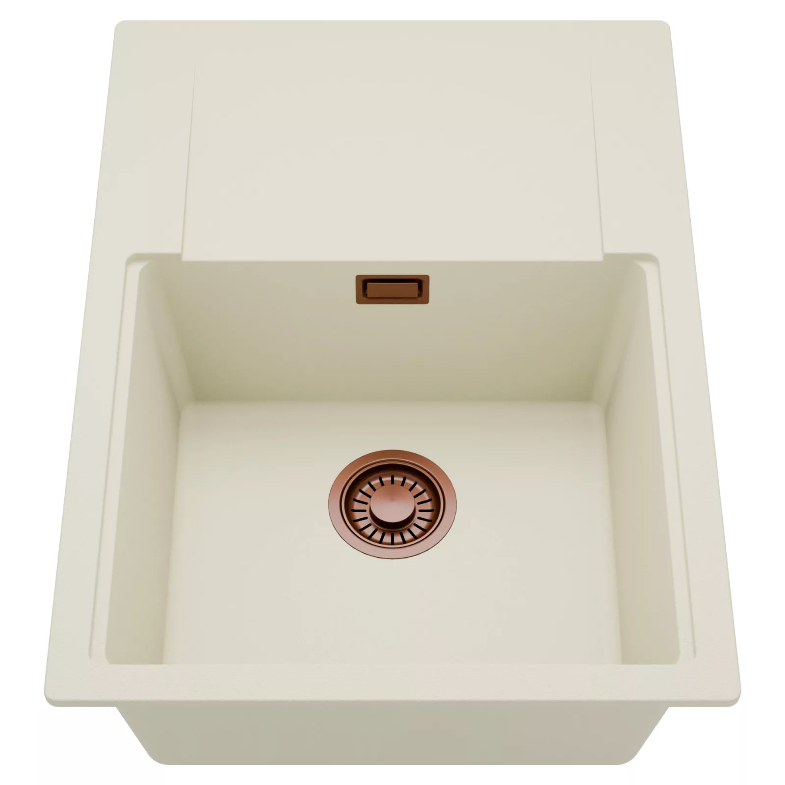 A mosogató prémium minőségű gránit kompozitból készült, amely kiváló ellenállást biztosít a mindennapi használat során keletkező karcolásokkal szemben. A strapabíró gránit felület hosszú távon is megőrzi esztétikus megjelenését, így a mosogató intenzív igénybevétel mellett is megmarad újszerű állapotában.