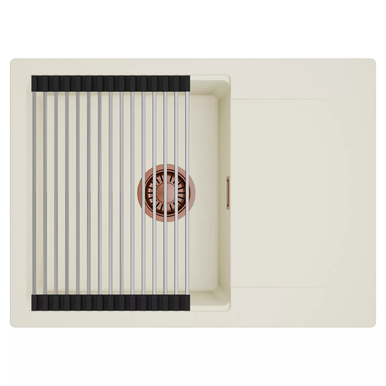 HD Onyx White 68-XL egymedencés mosogatótálca szett, csepegtetőráccsal, tört fehér