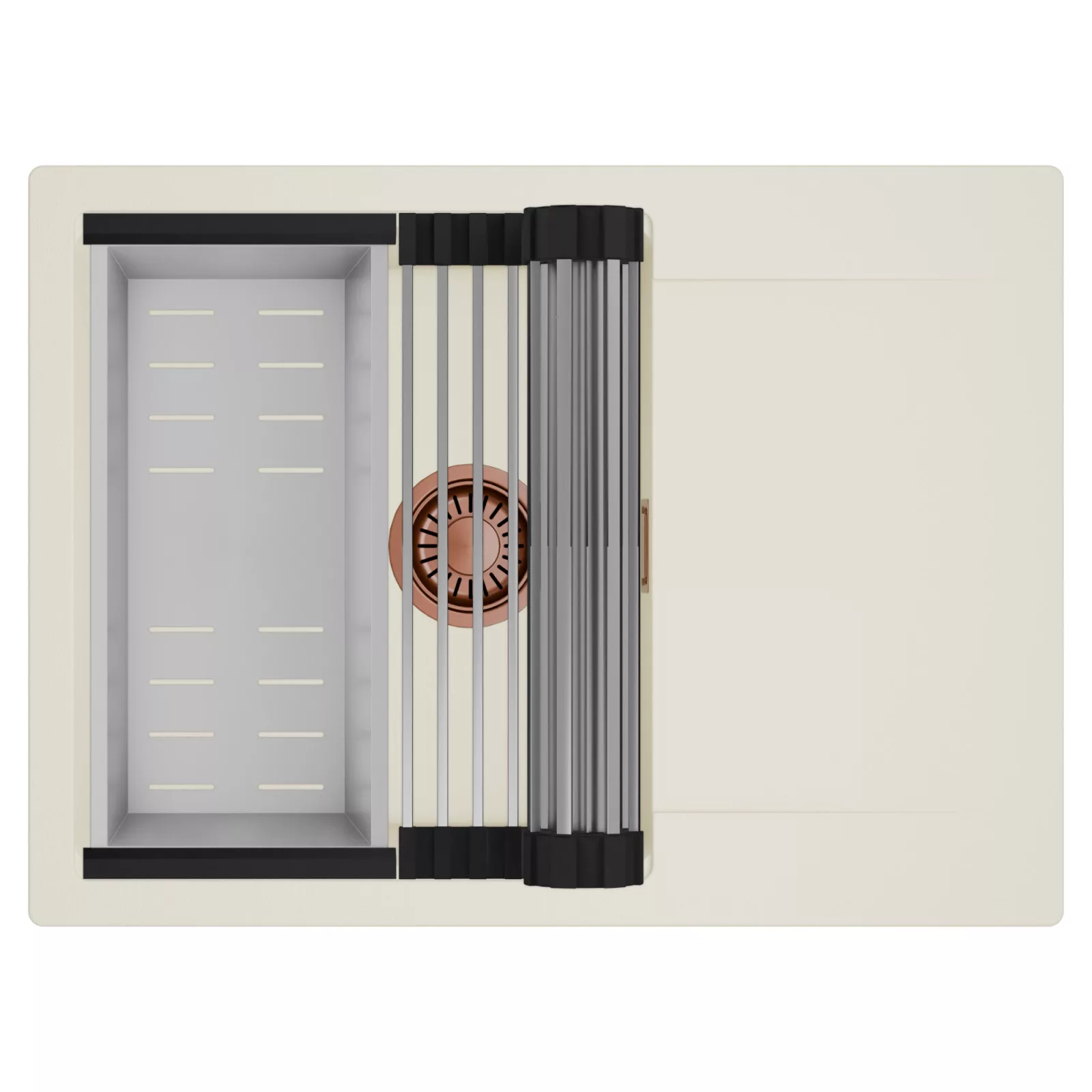 HD Onyx White 68-XL egymedencés mosogatótálca szett, csepegtetőráccsal és kosárral, tört fehér
