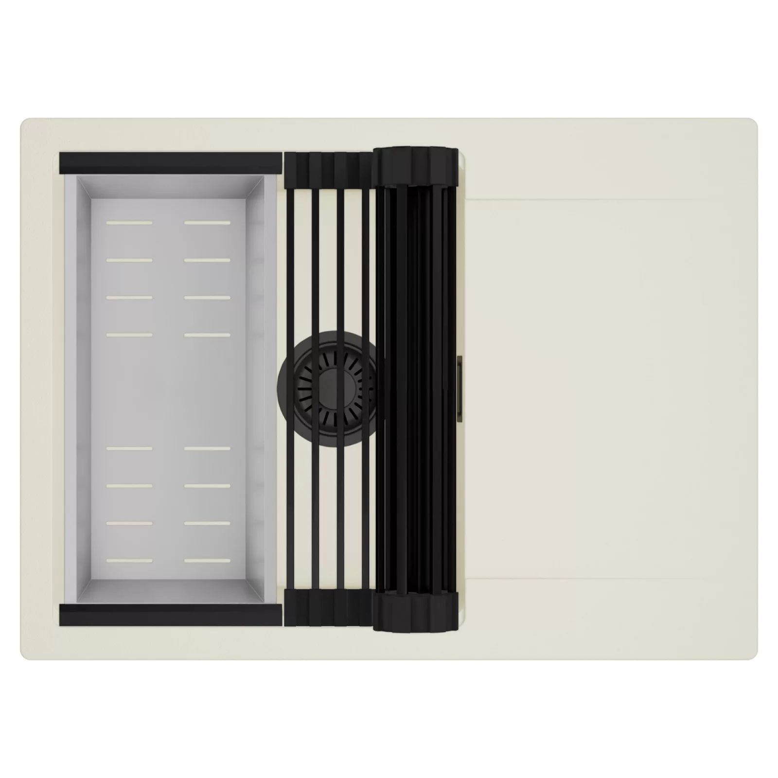 HD Onyx White 68-XL egymedencés mosogatótálca szett, csepegtetőráccsal és kosárral, tört fehér